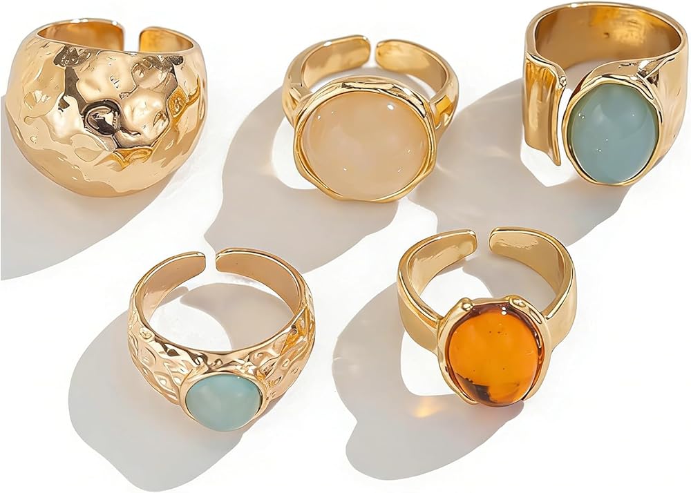 Non Tarnish Chunky Gemstone Ring: This Chunky Gemstone Ring Set features an irregular open design that adds a vintage flair, elevating your accessory game with a touch of elegance.