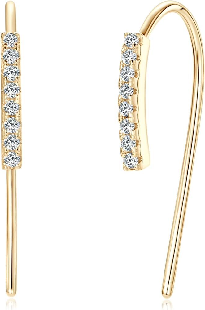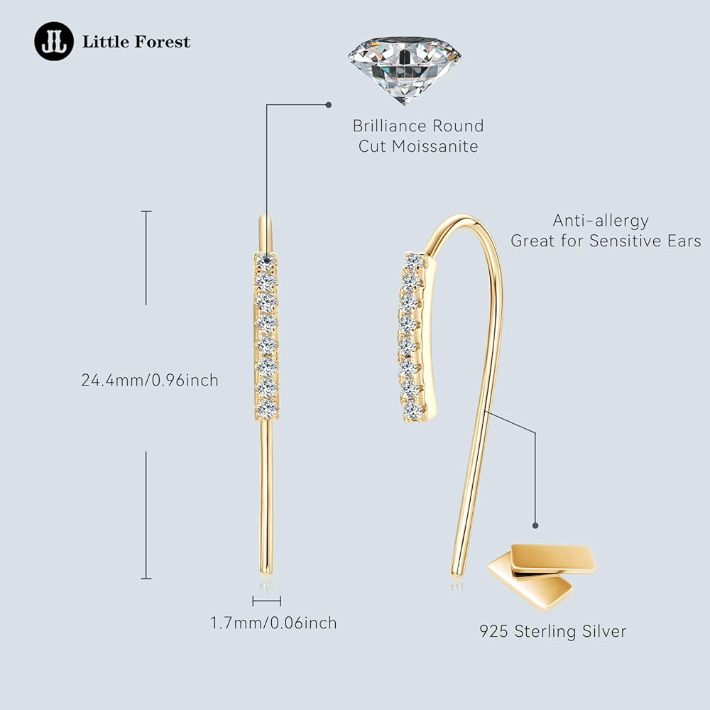 【Moissanite Pull Through Thread Earring】-These dangle earrings with curved bar, trendy and minimalist, is a perfect everyday piece of jewelry to complement any outfit. The silver earrings are set with 16 sparkling moissanite diamond that add to the sophistication of the jewelry. The simple fashion style perfect for casual, school, business and work, better highlight your exquisite and gentle style.