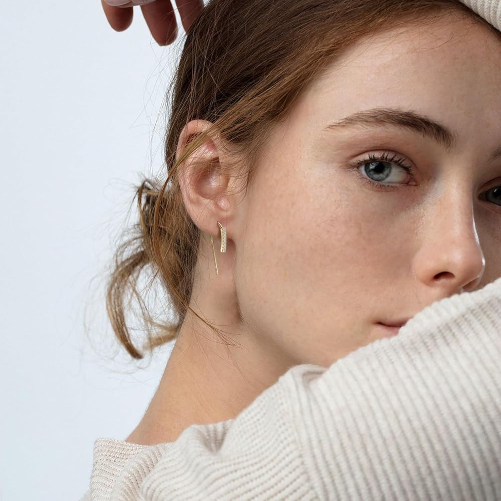 【925 Sterling Silver Earrings for Women】-The upside down hoop earrings crafted in 925 Sterling Silver and plated with 18K white gold/14K yellow gold to ensure a long term durability, which is reliable and sturdy, beautiful in color and good in texture. Lead-free, nickle-free & hypoallergenic, will not turn your skin green, red or itchy. Best earrings for your sensitive skins.