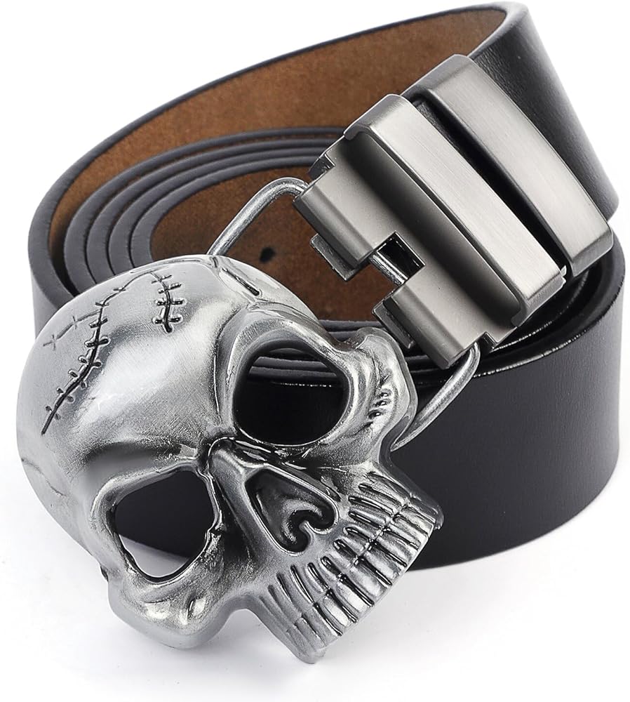Material: The men's skull buckle is made of high-quality zinc alloy material, which is durable and has a smooth appearance and texture. Has high anti rust, anti-corrosion, and anti discoloration properties. Belt: We use high-quality genuine leather material with moderate softness and hardness.