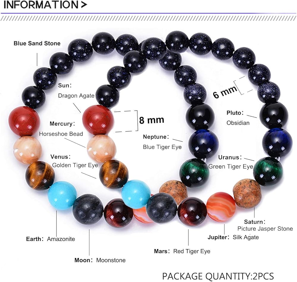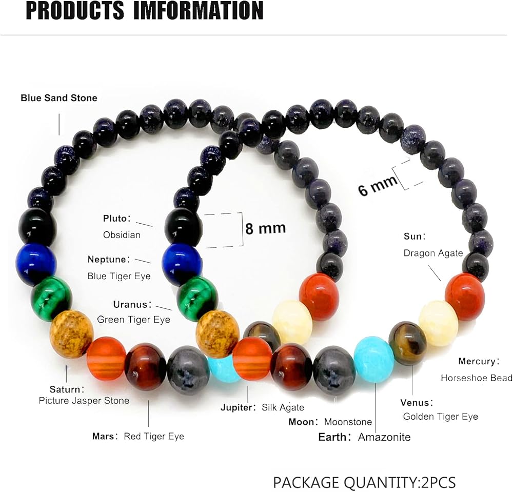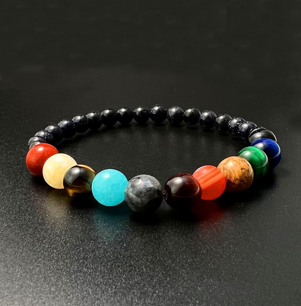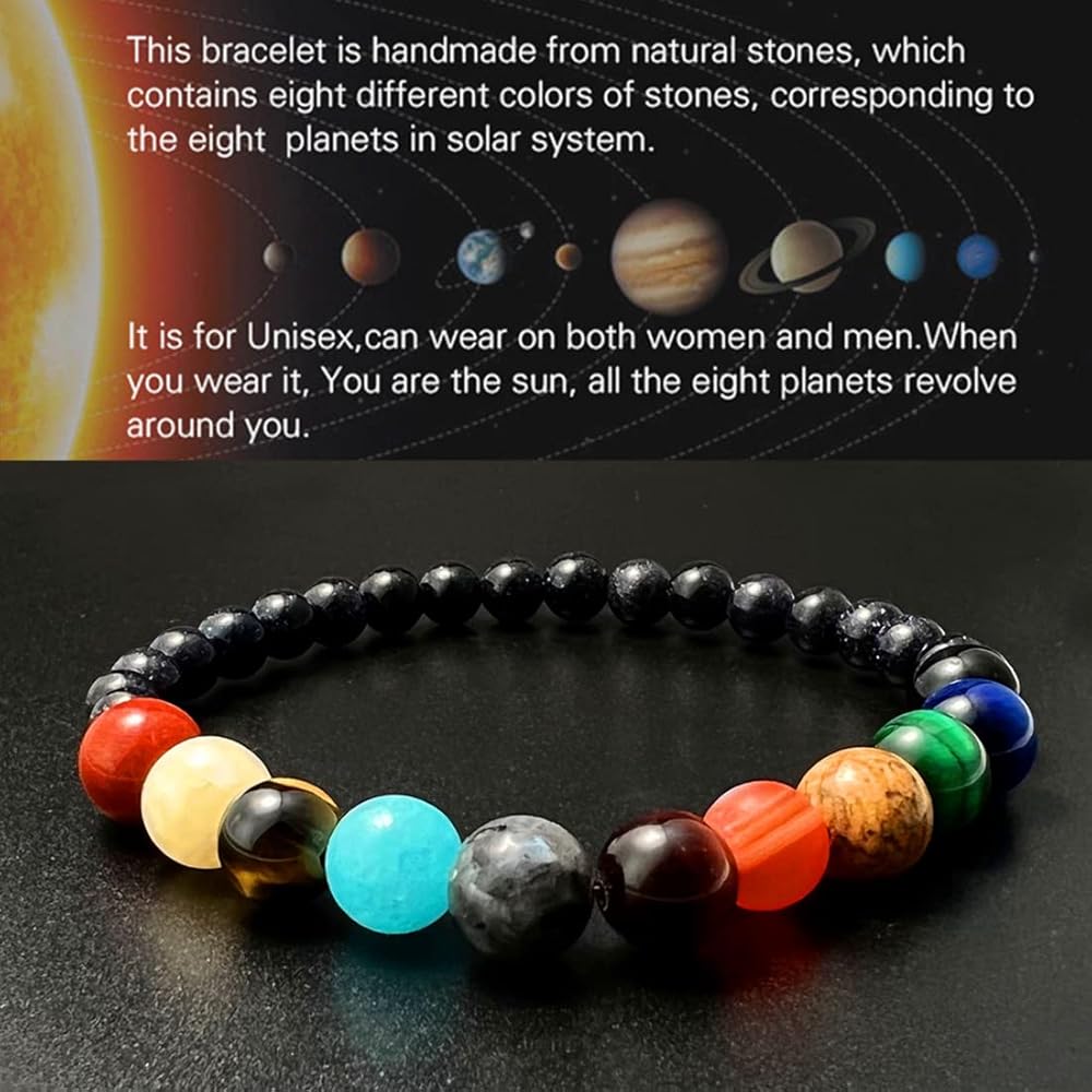 This solar system stone beads bracelet has a very creative design whereby you act like the sun and all the planets are around you turn up!