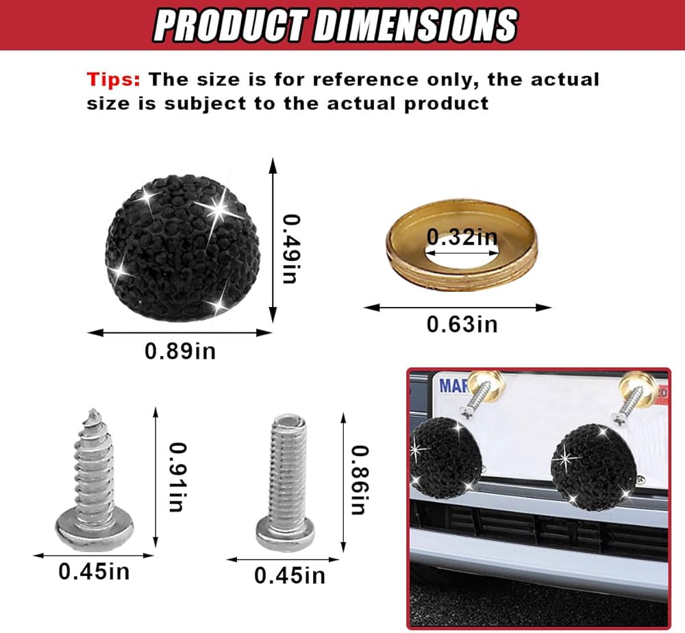 【Package Included】: You will receive 2 diamond screw caps, 2 round head screws, 2 pointed head screws, and 2 washers. You can choose the screws that suit your car model for installation to ensure that it can easily meet your installation needs.