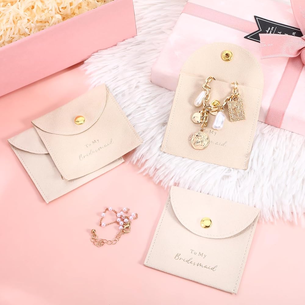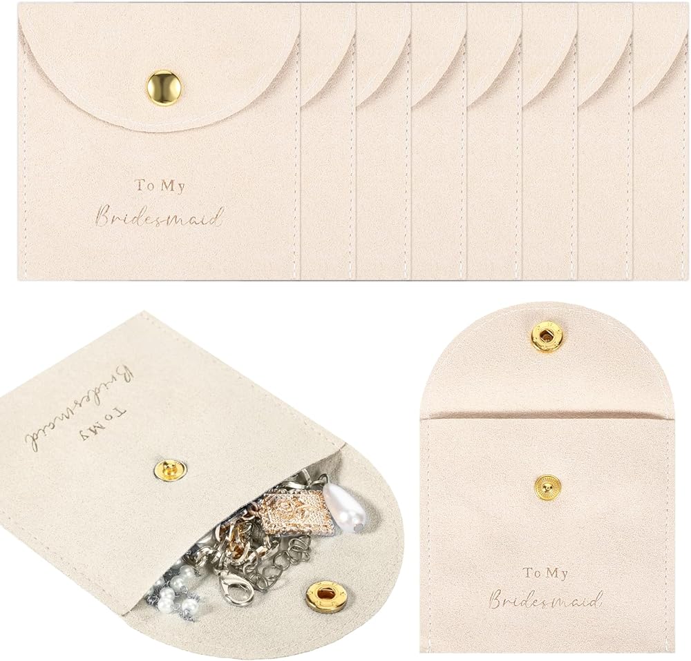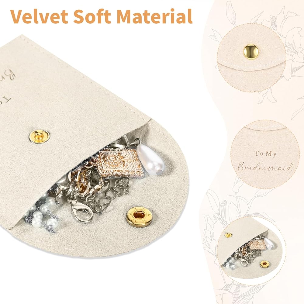 Versatile Storage: With enough space to store rings, bracelets, earrings, pendants, and more, these jewelry pouches are the ideal way to organize your jewelry. Perfect for everyday use or as a chic addition to gifts for bridesmaids, they combine practicality with elegance.