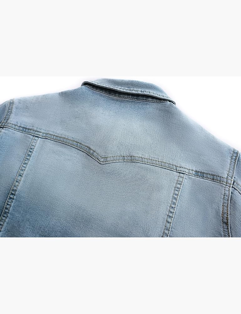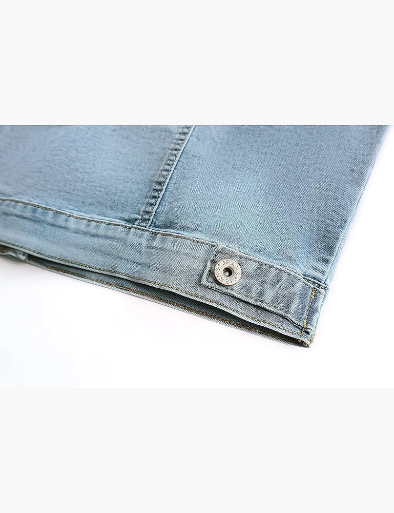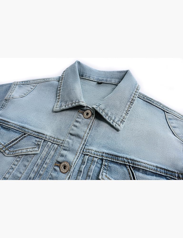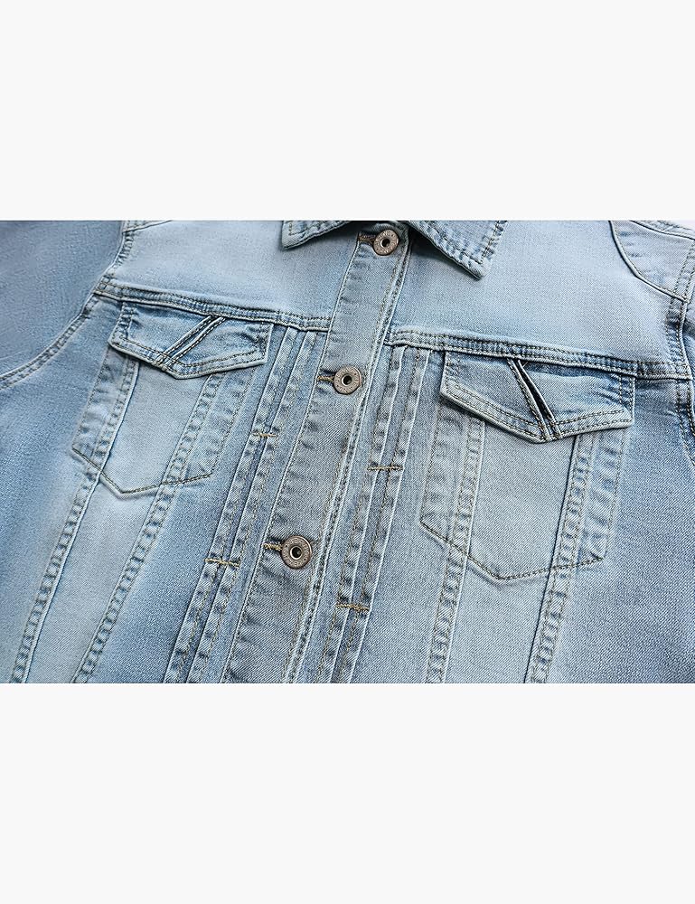 Omoone Women's 3/4 Sleeve Cropped Stretch Slim Denim Trucker Jacket Jean Coats Tops