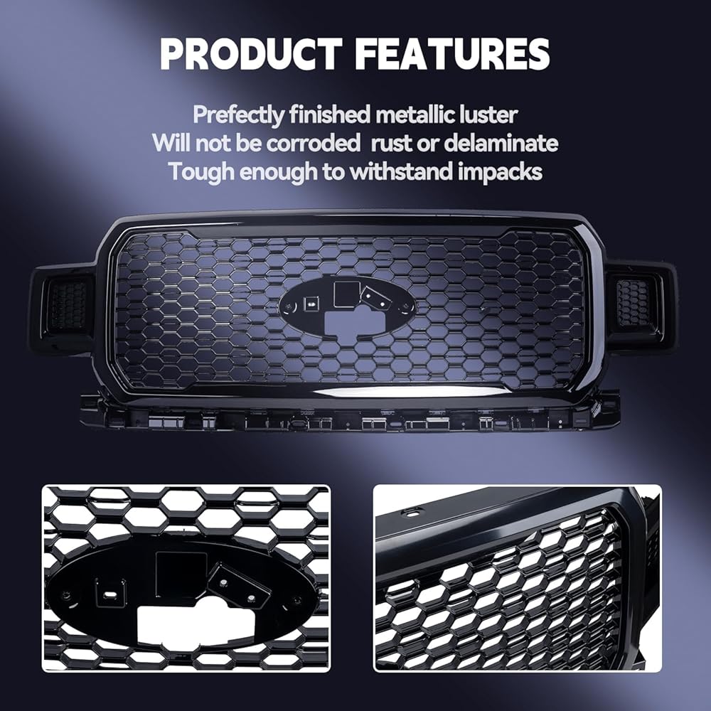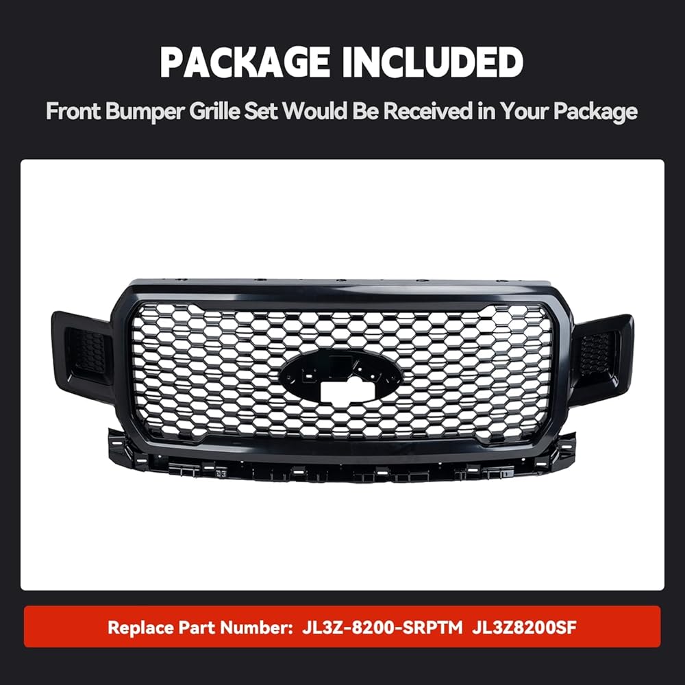 Applicable Vehicles: This grille compatible with 2018 2019 2020 Ford F150. (Doen't support camera!). REPLACEMENT PART NUMBER: JL3Z8200SF. 100% Brand New.