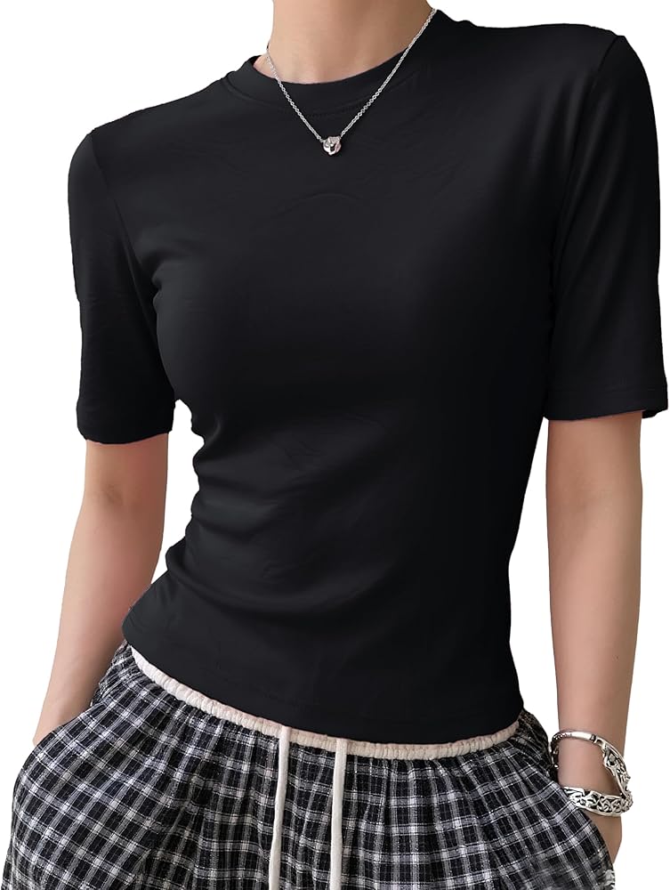 Easy to Match: Basic tees for women is a versatile essential tee shirts, plain t shirts for women can pair with lounge shorts, sweatpants, jeans, jackets, skirt or pants, so you can wear this womens short sleeve tops in spring/summer/fall/winter.