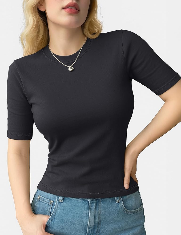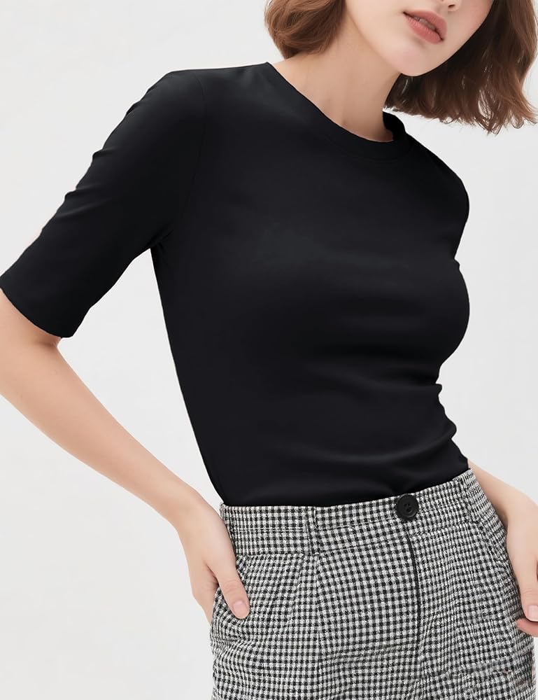 Soft Cotton Material: This half sleeve t shirts for women is made of 91.8% cotton and 8.2% spandex, which is soft, breathable and not see through. Please choose one size smaller according to the size chart for a tight fit.