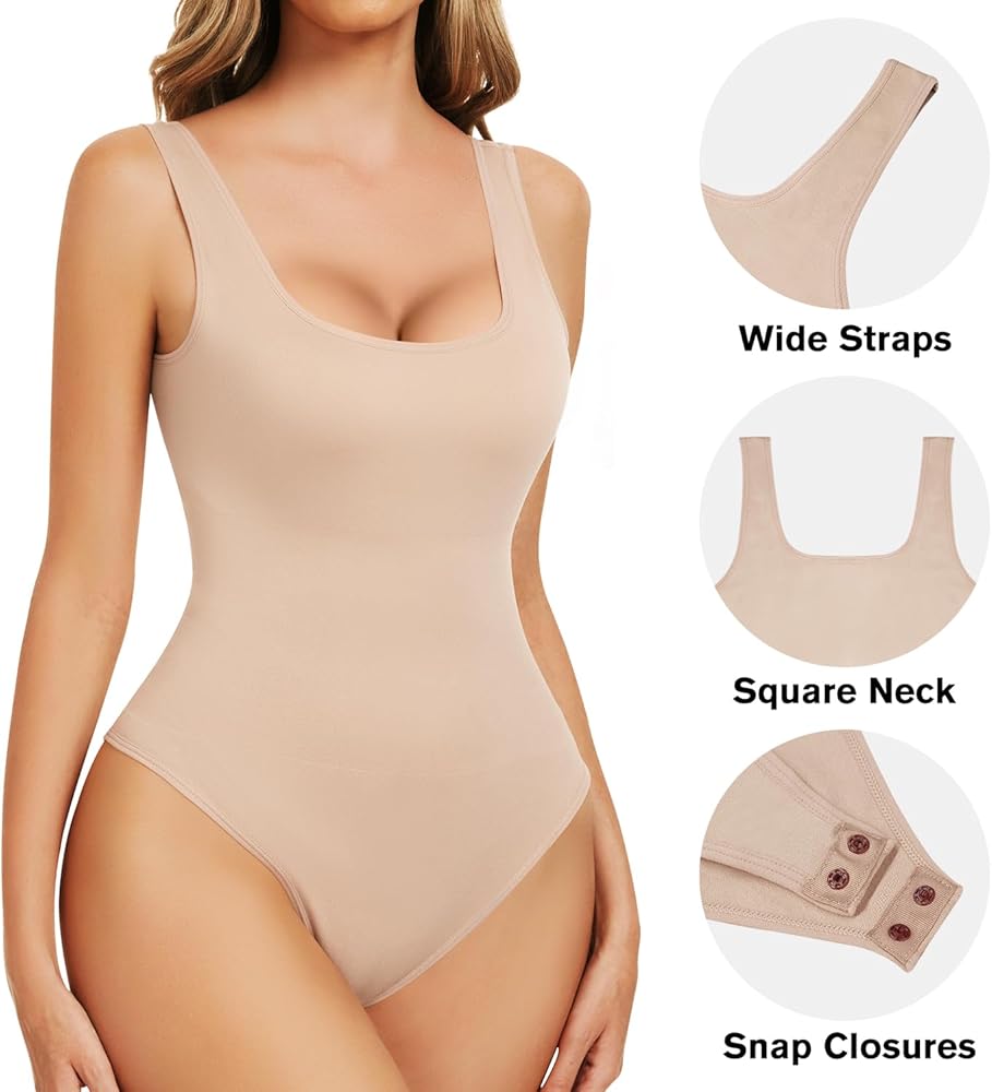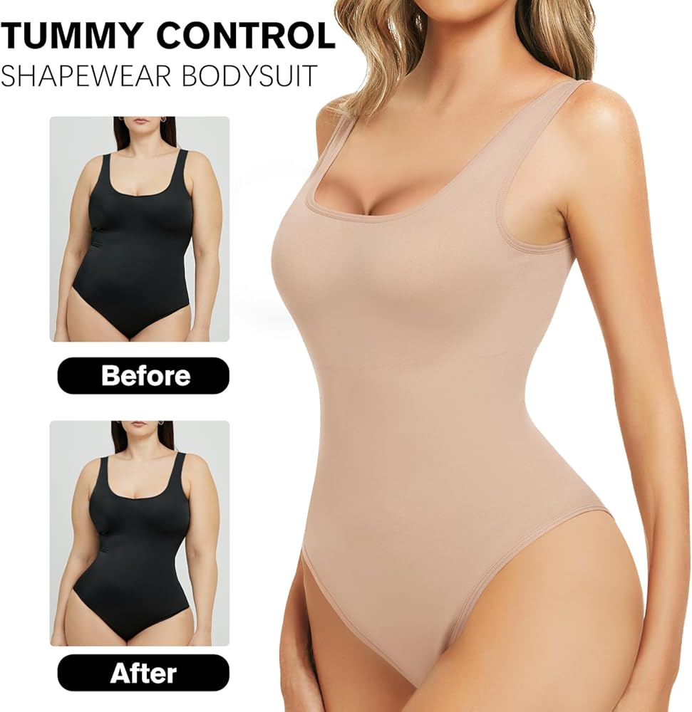 Comfortable and Skim: Our women sleeveless shapewear bodysuits have 2 wide and elastic straps, help relieve shoulders pressure, leave NO over-squeezing marks, let you feel more comfortable and keep fit. The soft crotch with two buttons, convenient for the bathroom, easy to put on and off, avoid scratching your body and matching clothes.