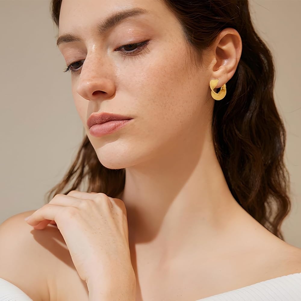 Gold earrings: 18k gold plated; well polished for a long-lasting shiny;for pierced ear