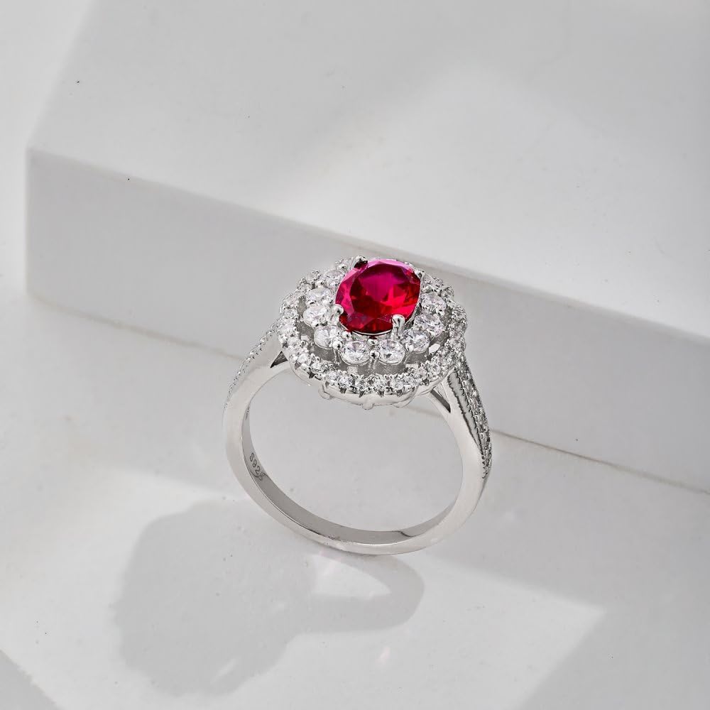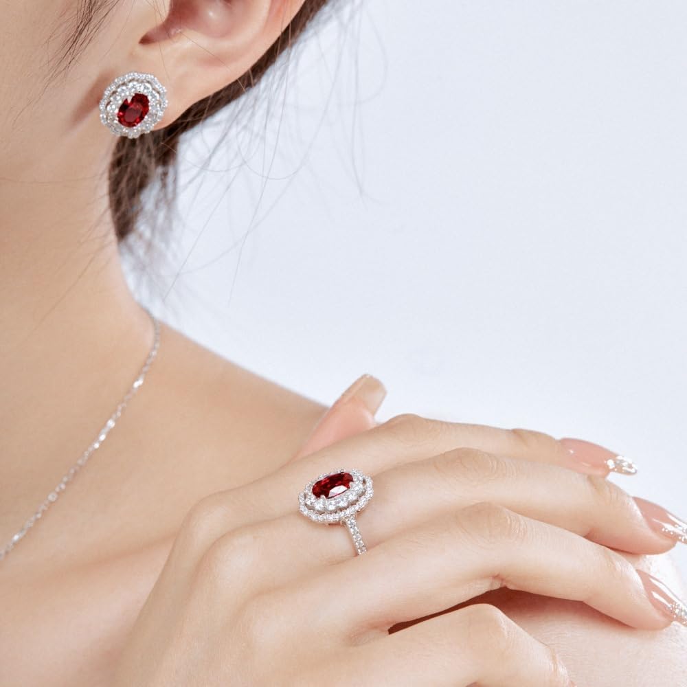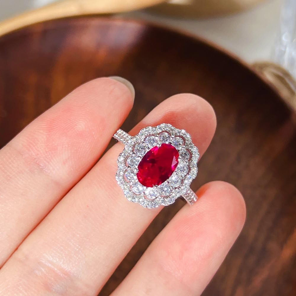 【Dazzling Ruby Jewelry】 Adorn your hand with the elegance of our oval moissanite and red stone ring in S925 sterling silver. This dazzling jewelry piece, featuring a combination of moissanite and a red stone, is the perfect representation of July's birthstone for women.