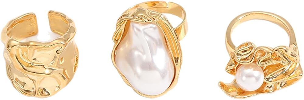 Trendy 3 - Piece Set Design: This 3 PCS Gold Chunky Pearl Ring set is a must - have for women who love fashion. The baroque pearl design adds a touch of elegance and uniqueness. The baroque pearl design adds a touch of elegance and uniqueness. Each open ring in the set is a statement piece on its own