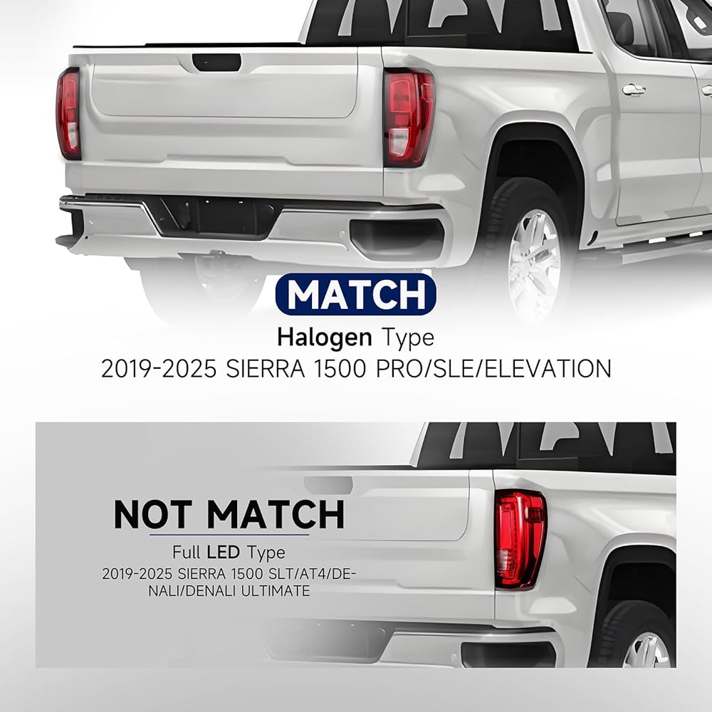 Vehicle Compatibility: Fits 2019 2020 2021 2022 2023 2024 2025 GMC Sierra 1500 PRO/SLE/ELEVATION/sierra 2500HD/sierra 3500HD. Perfect rear tail light assembly replacement for damaged or worn-out lights.Replace OEM: GM2801309 84968737