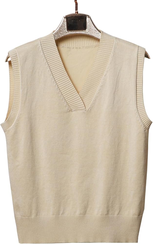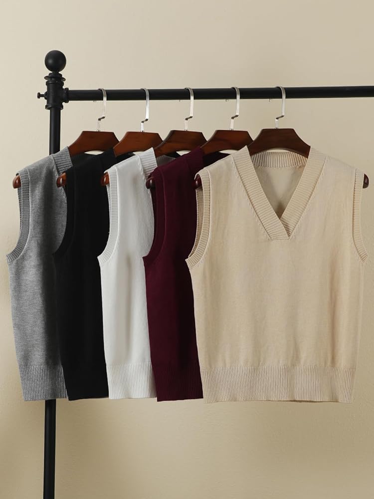 Design: Womens tops sweater vest v neck, sleeveless, solid color, loose fit, ribbed cuff and hem, thin knitted vest, lightweight knit tank tops, JK uniform classic basic tank tops