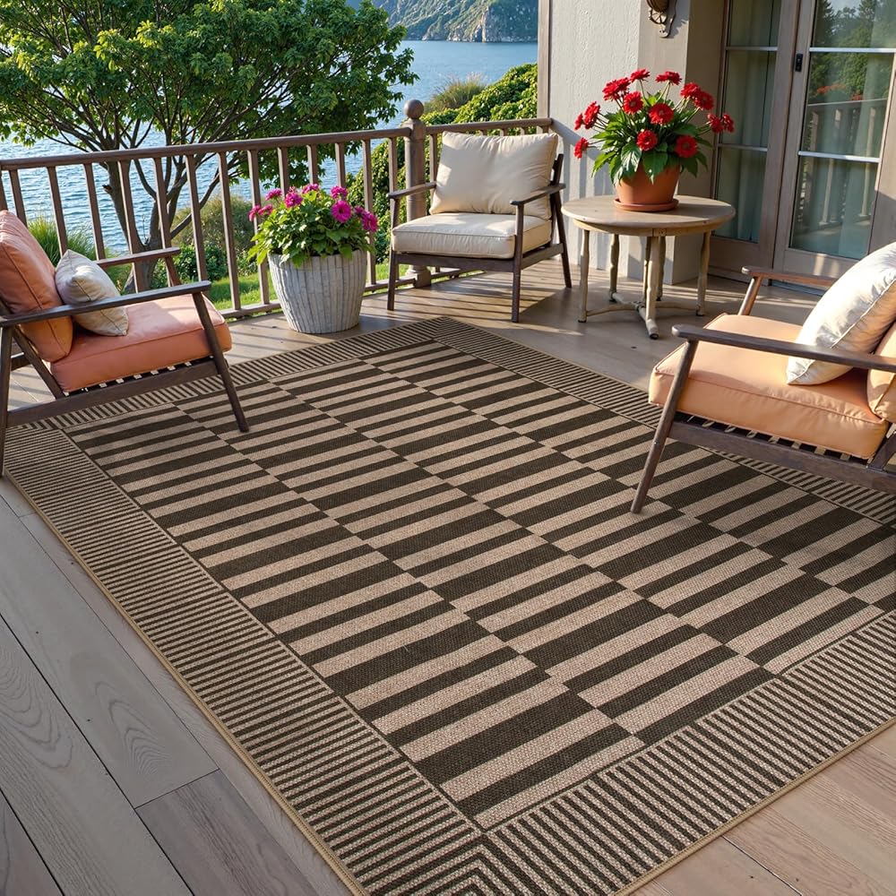 Safe and Non-Slip: Designed with a non-slip TPE backing to help keep the 3x5 outdoor rug firmly in place and minimize the risk of slips and falls, great for families with children and pets.