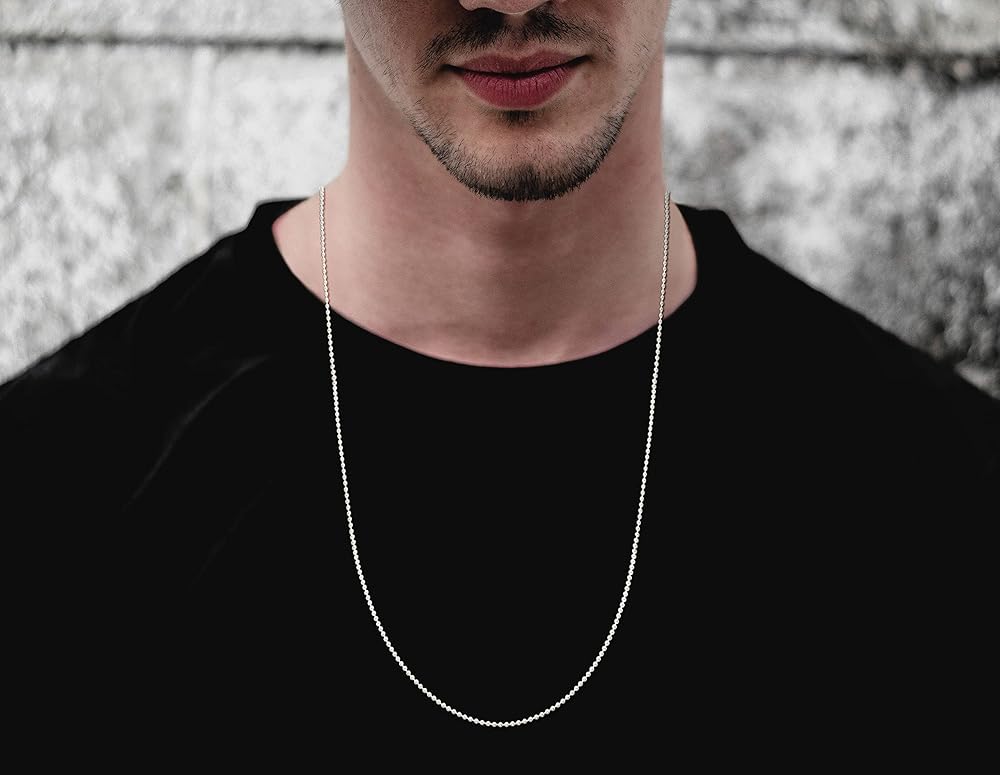 This Solid 925 Solid Bead Ball Dog Tag Chain Necklace will fit any style. This necklace is built with our durable Savlano strength Lobster Clasp for a strong secure lock and easy use. No Hair Pulling or Skin Pinching, it is very comfortable to wear around your neck.