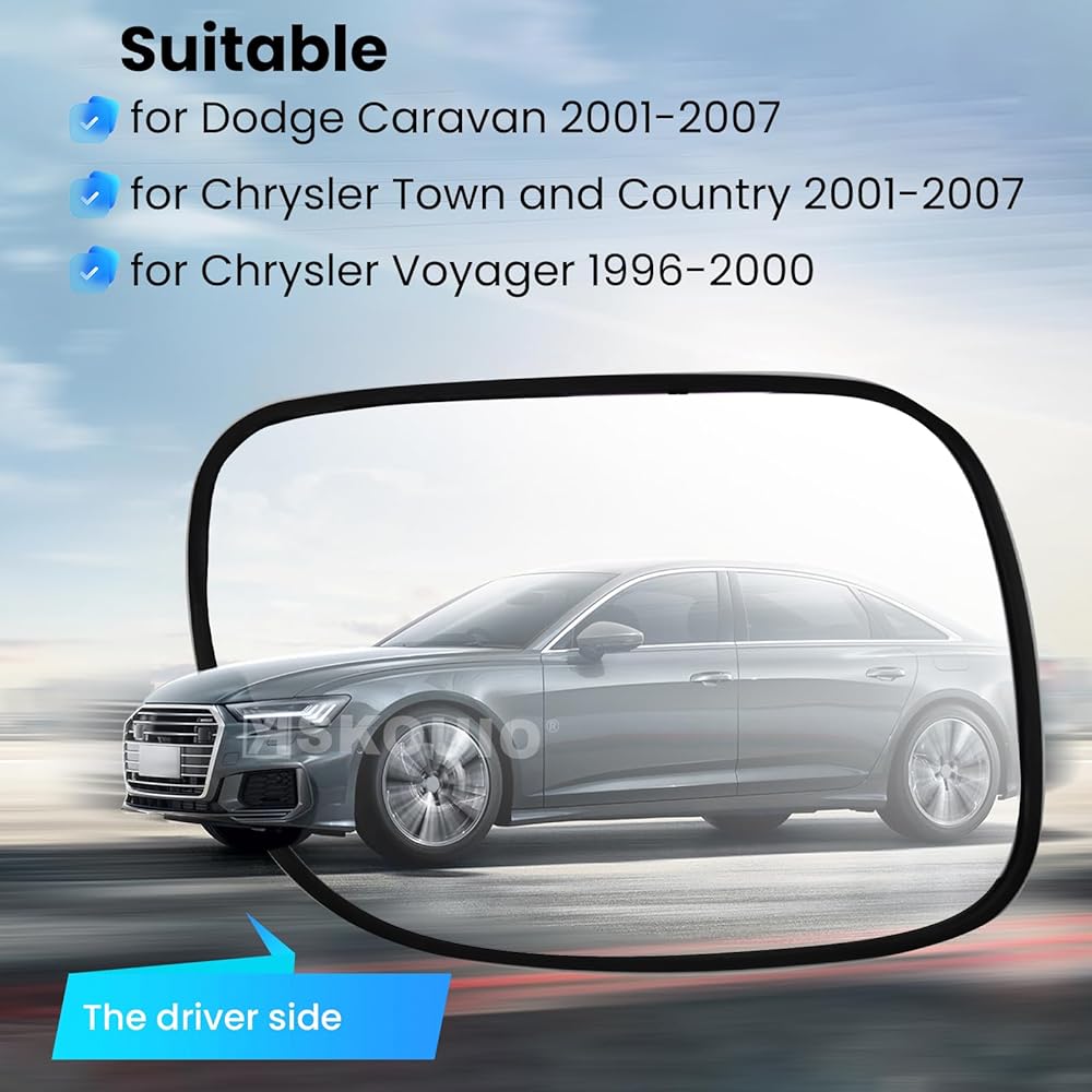 Driver Side Mirror Replacement Glass for Dodge Caravan 2001-2007,for Chrysler Town and Country 2001-2007,for Chrysler Voyager 1996-2000 Backing Plate Power Heated Left Side View Mirror Glass