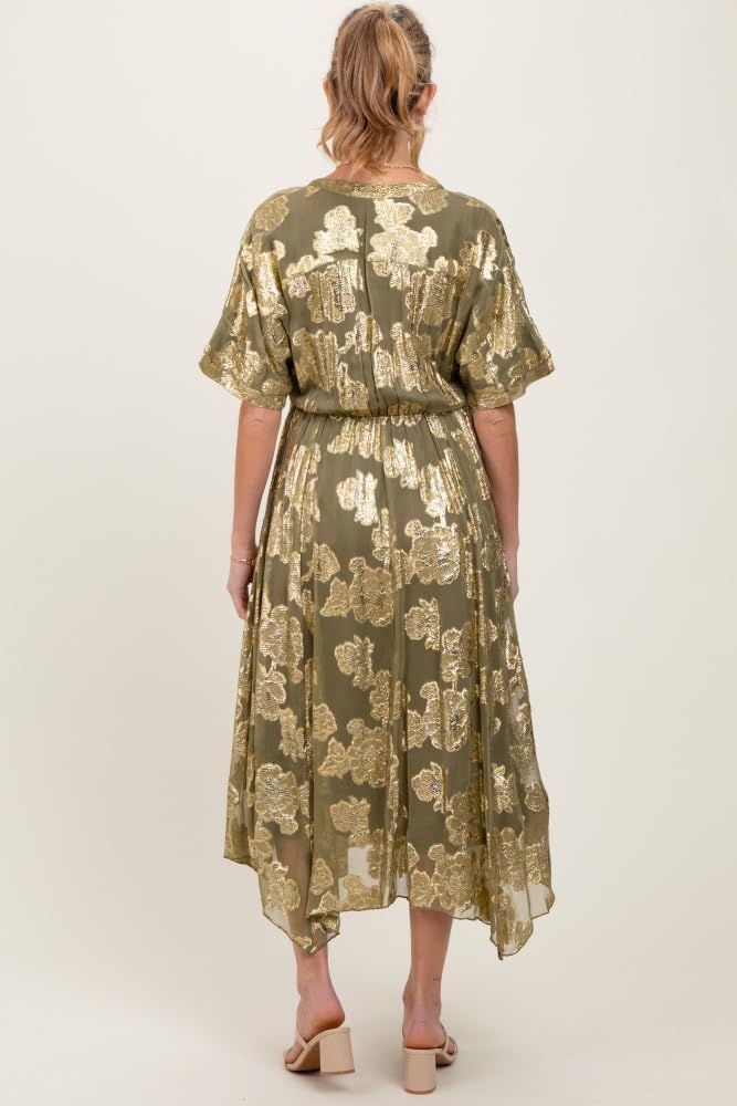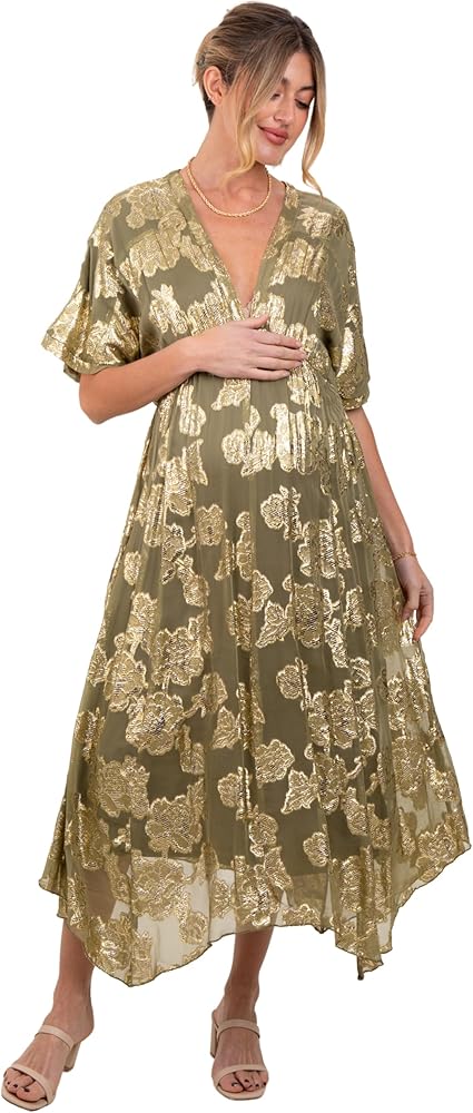 PinkBlush Metallic Floral Jacquard Overlay Maternity Maxi Dress