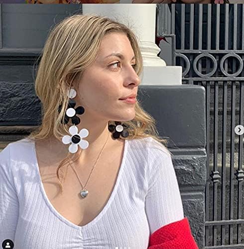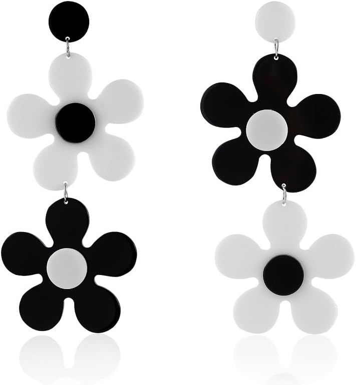 Big Acrylic daisy flower Dangle Earrings White & Black Statement Fashion Women Drop Earrings