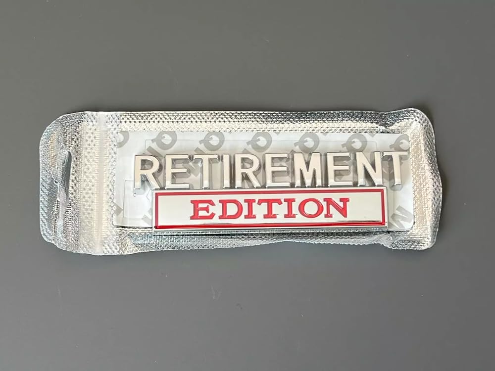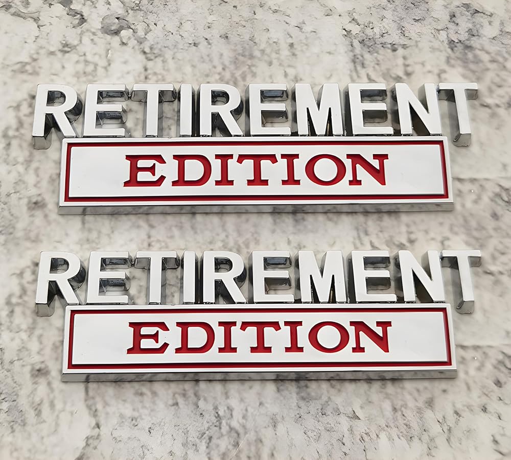 Pair Set Retirement Edition Badge 3D Emblem Fit for Car Truck SUV Side Rear Front Hood Trunk Door Decal Sticker (Silver Red)