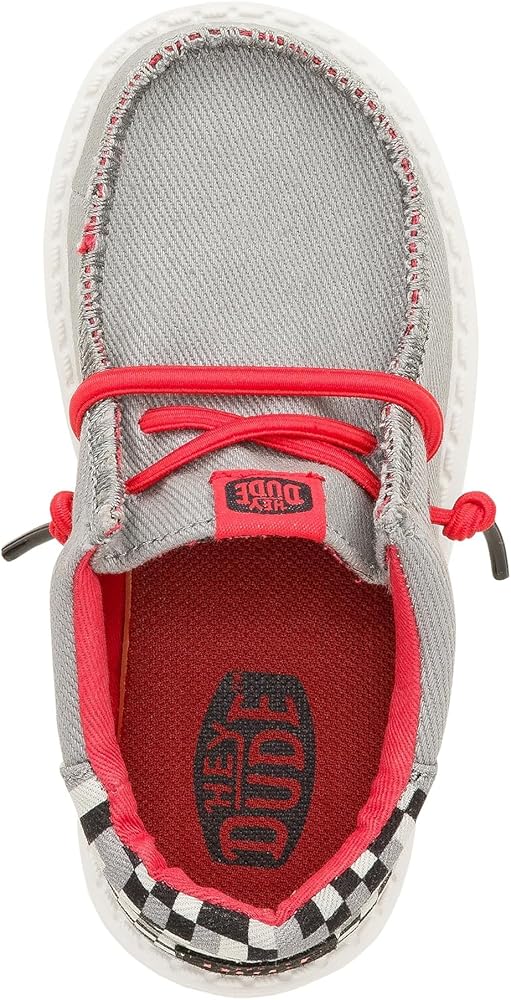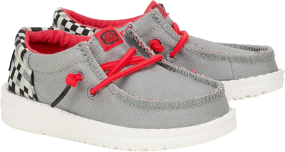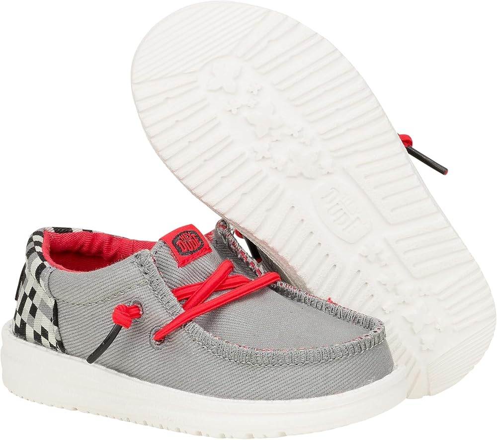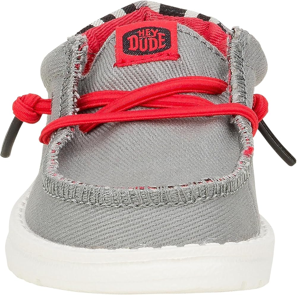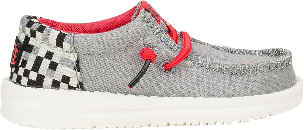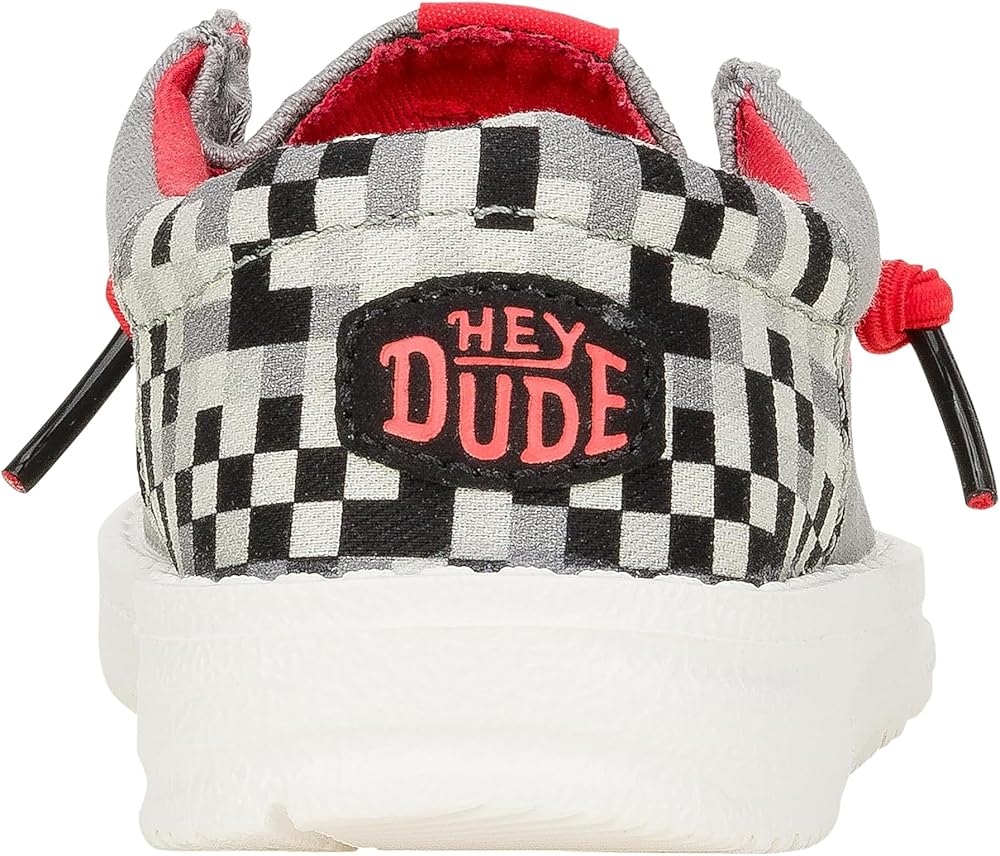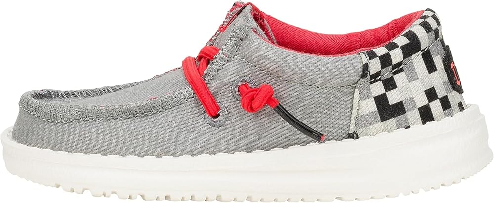 Let your kiddo's feet experience mystical comfort allure wearing the Hey Dude Kids Wally Funk Gaming Lifestyle Sneakers. The low-top footwear features canvas upper with a mosaic heel counter and moc toe silhouette. Cotton lining. Removable memory foam cushioned insole provides maximum comfort and reduces sweating and odors. Flex & Fold supports healthy feet with its unique shape giving complete freedom of movement. Fixed elastic laces with an easy pull-on style. Rounded toe design. Lightweight and flexible rubber outsole.