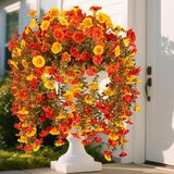 2【Artificial Mums for outdoor】: Do you prepar artificial flowers for outdoors or indoor fall decoration. This artificial fall flowers are best solution. Golden and yellow leaves and flowers. It gives a feeling of Fall-Coming.