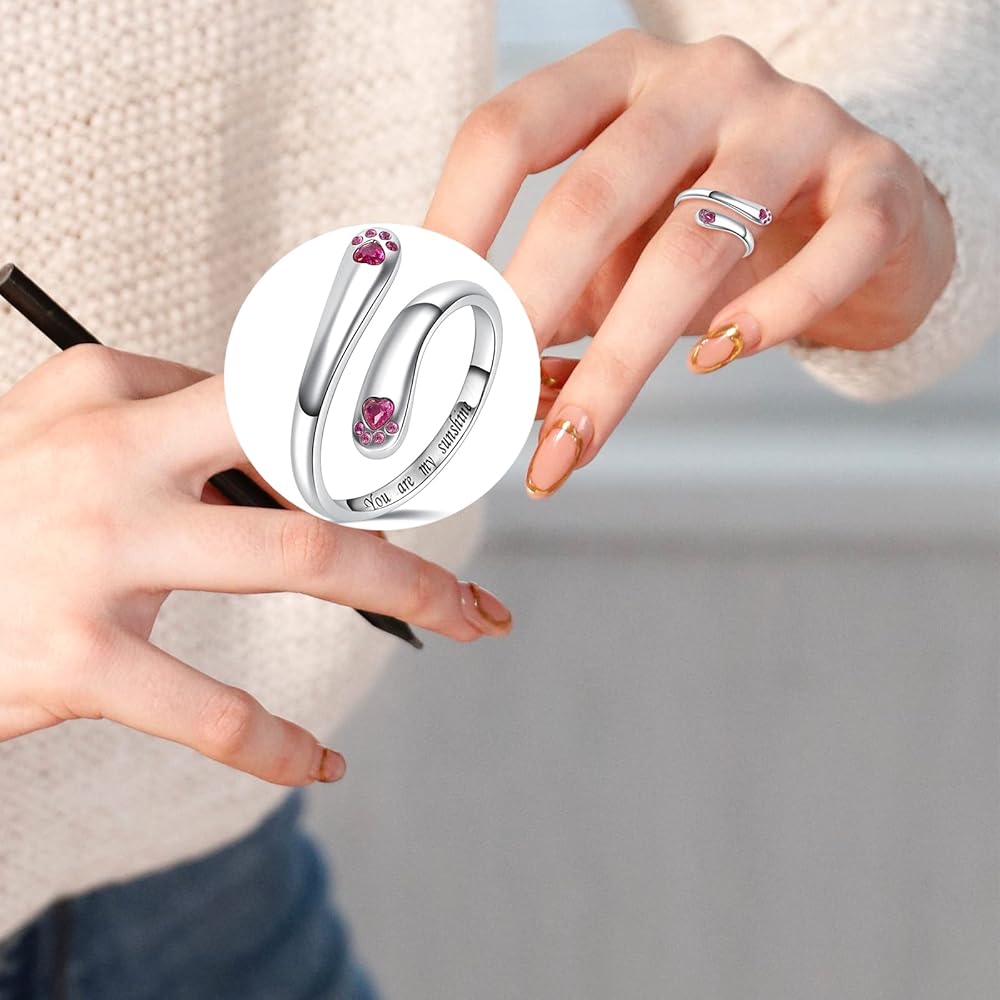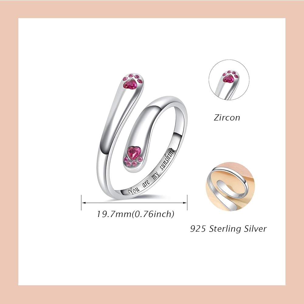 Puppy paw adjustable ring is made of 925 high-quality sterling silver and cubic zirconia.The wrap-around open ring can be flexibly adjusted in size to fit most fingers. This material is hypoallergenic which can largely prevent the wearer from itching and allergies. It is comfortable for sensitive skins. Zircon is firm and not easy to fall off.