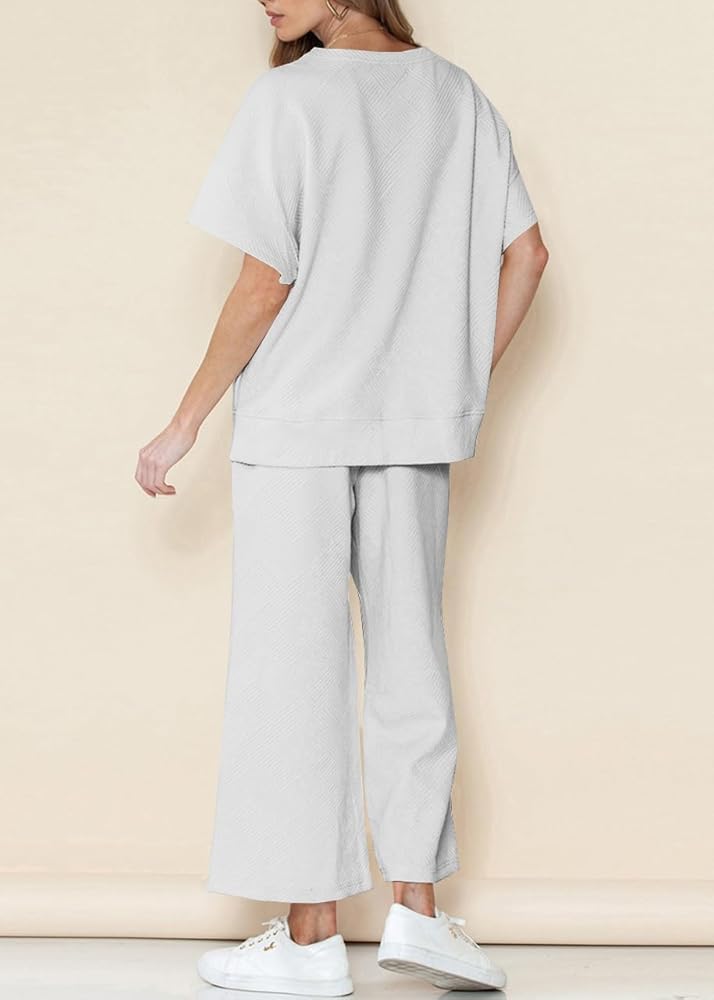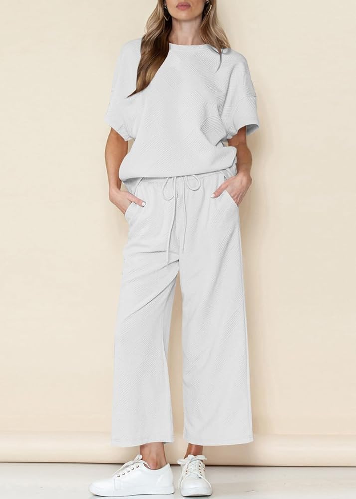 Flattering Fit for All:Wide leg pants elongate legs, while the relaxed T-shirt flatters curves. Available in inclusive sizing (S-XXL).Machine wash. Please refer to our size chart before purchase.