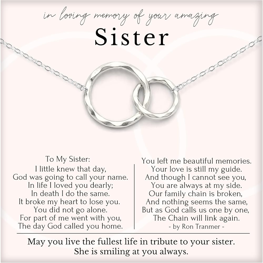 MEMORIAL JEWELRY: A beautiful double circle necklace for women in memory of a lost sister. This piece of jewelry is the perfect sentimental keepsake symbolizing our cherished link to our loved ones in heaven.