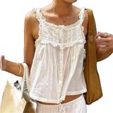 Women Y2k Lace Ruffle Trim Tank Top