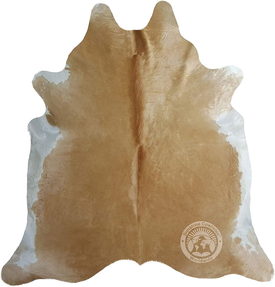 Sunshine Cowhides 100% Genuine Palomino Beige and White Cowhide Rug - Modern Style Animal Skin Rug & Floor Carpet for Living Room, Bedroom, Kitchen & More - Extra Large (6x7-8 Ft.)