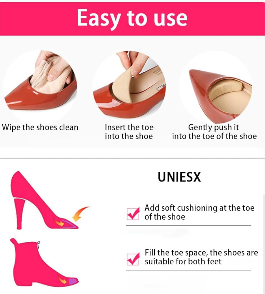 6 Pairs Black Toe Filler Cushion Inserts Soft Sponge Adjustable Shoe Filler Breathable Big Toe Plug Forefoot Pad Unisex Foot Brace Pads Reusable Foam Too Big Insert for Flats Sneakers Men Women