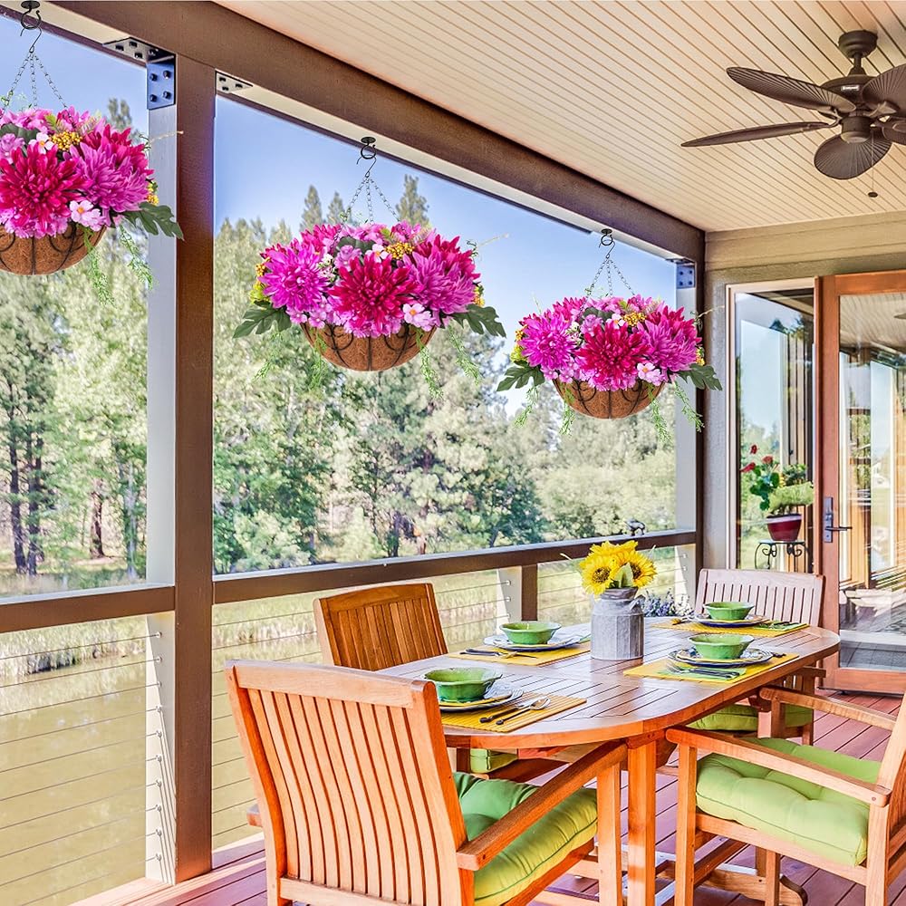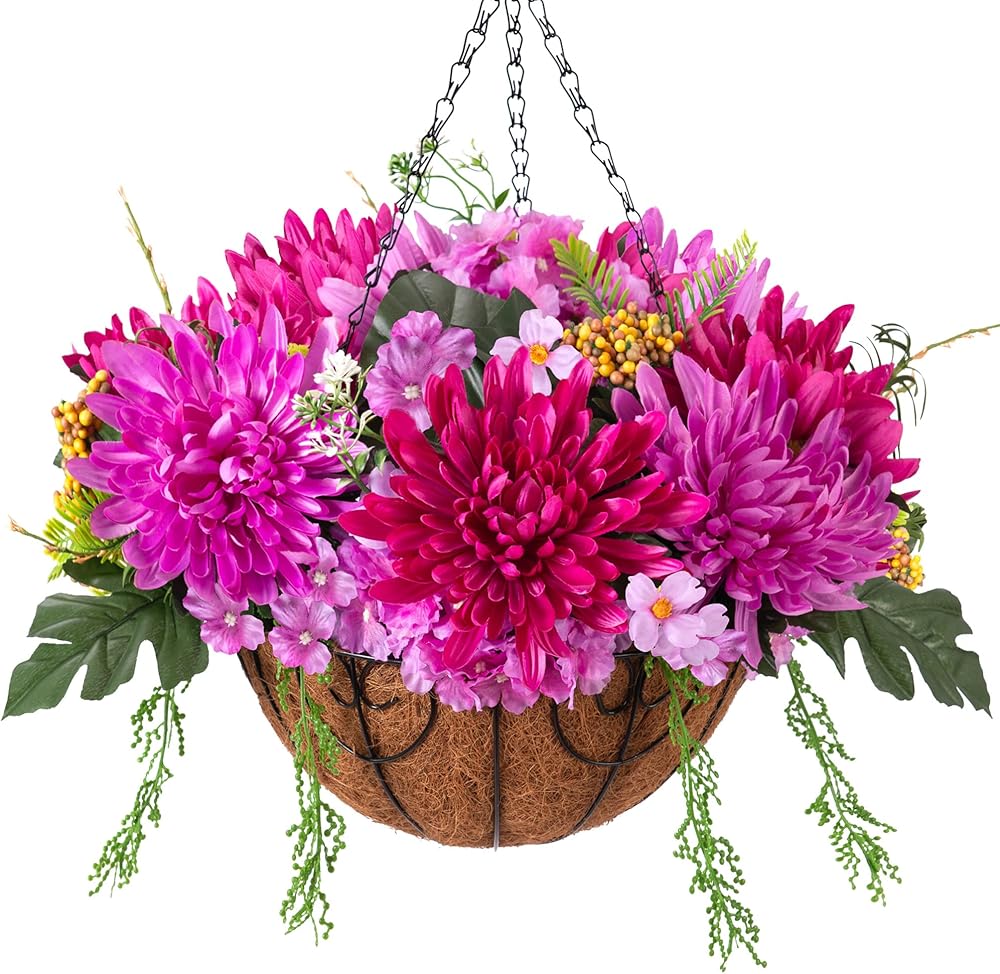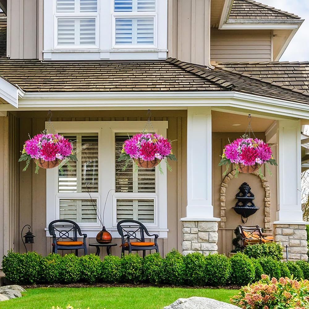 ARTIFICIAL GREENERY DECORATION: The fake hanging flower in a basket looks real and stylish, making it the perfect hanging basket for your home, patio, balcony, garden, indoor and outdoor. It blooms all year and adds a sense of summer to your home.