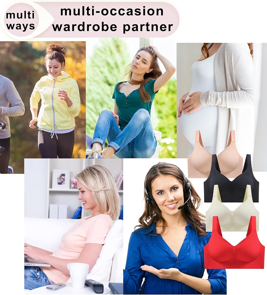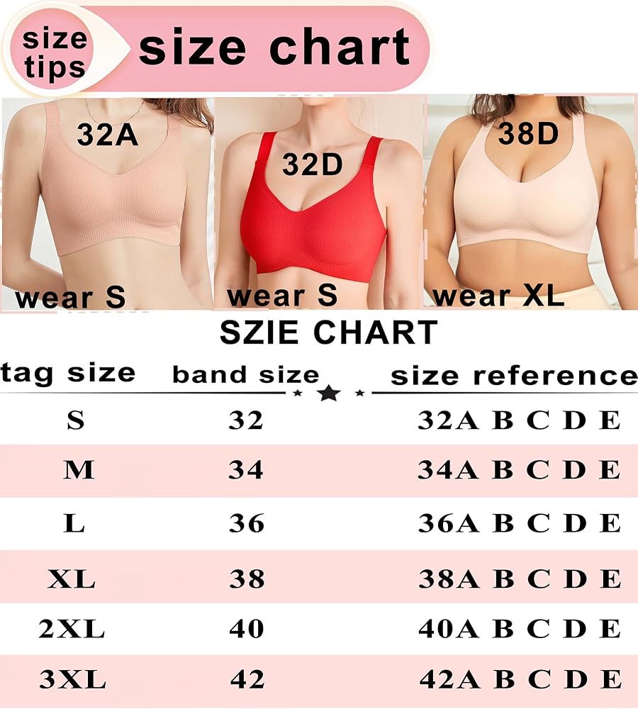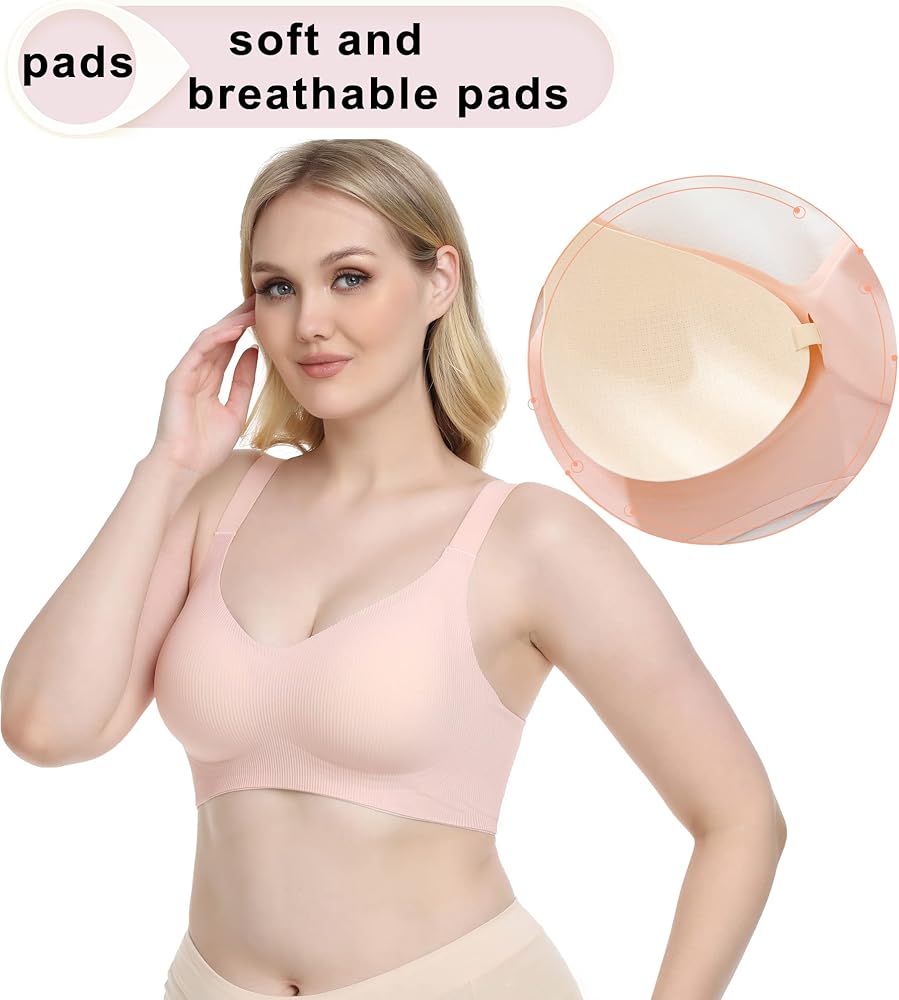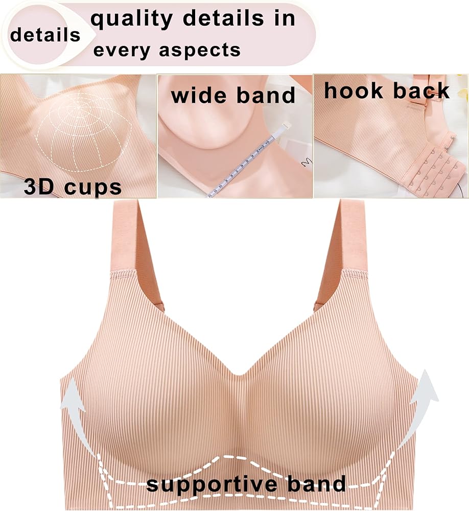 【Wireless bra for women】Our no underwire bras for women are made of nylon and spandex, the soft and smooth fabric offers a comfort fit. The great elastic seamless bra gives you a comfy "barely-there" feel, 24-hours everyday bra and sleep bra