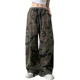 Features: Womens cargo pants with multi pockets, straight, wide leg, high waisted, adjustable bottom drawstring, back elastic waistband