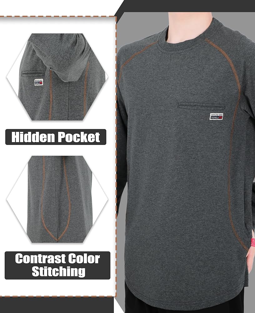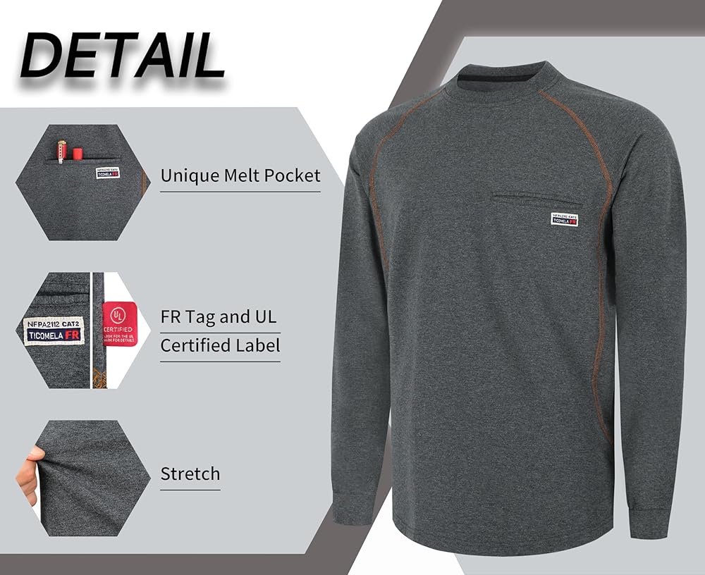 Flame Retardant Properties:This mens fr shirts meet or exceeds HRC2, Arc Rating Atpv 8 Calories/cm2 standards, and UL Classification's NFPA2112 Standard (2018 Edition) for flame retardant garments, which is used to protect industrial personnel from flash fires. It also passed NFPA70E ASTM F1506 and CAT2 certification!