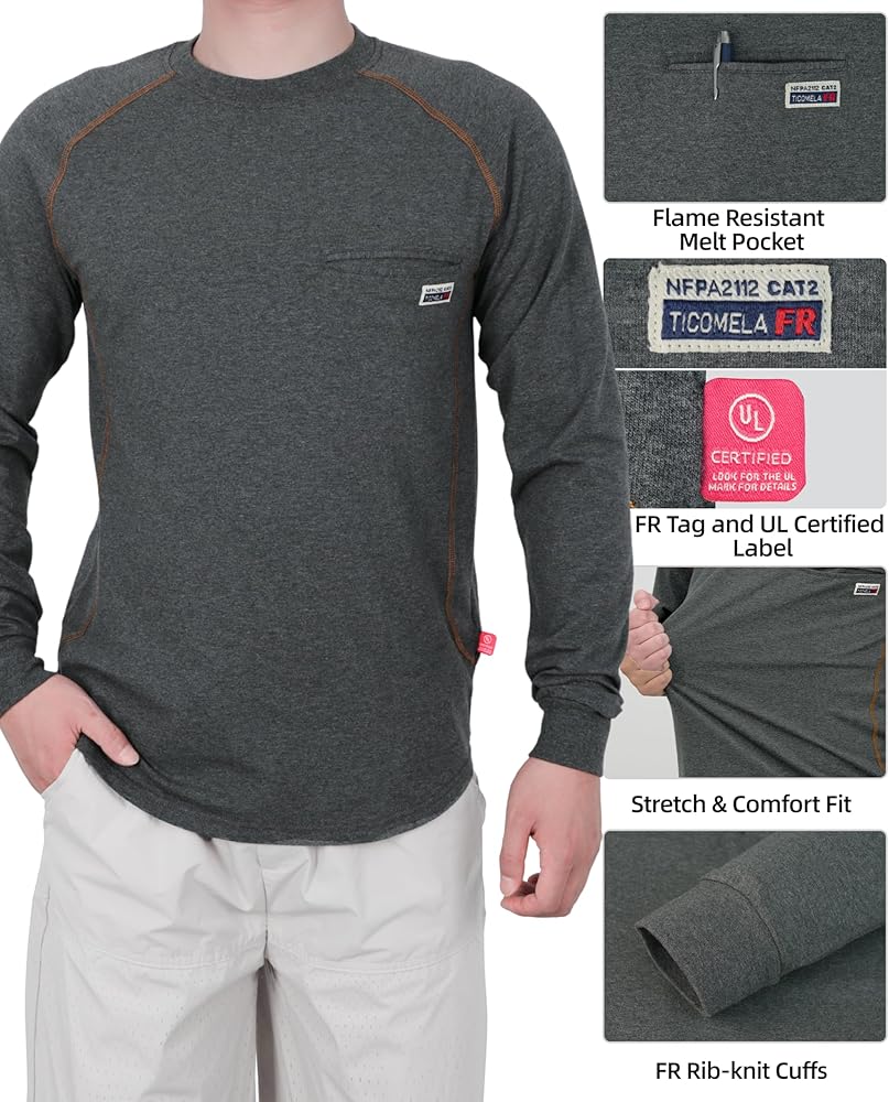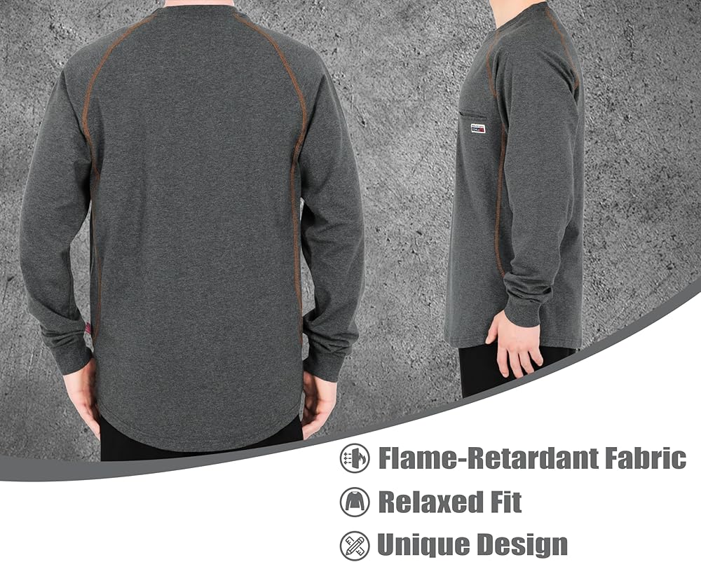 Flame-Retardant Fabric(6OZ): This frc shirt is made from 6oz 100% cotton fabric,heather dyed color not easily fading from the strong sunshine. Our flame resistant shirt is soft, lightweight,breathable, providing you protection from arc flash risks.