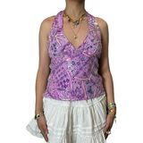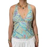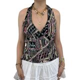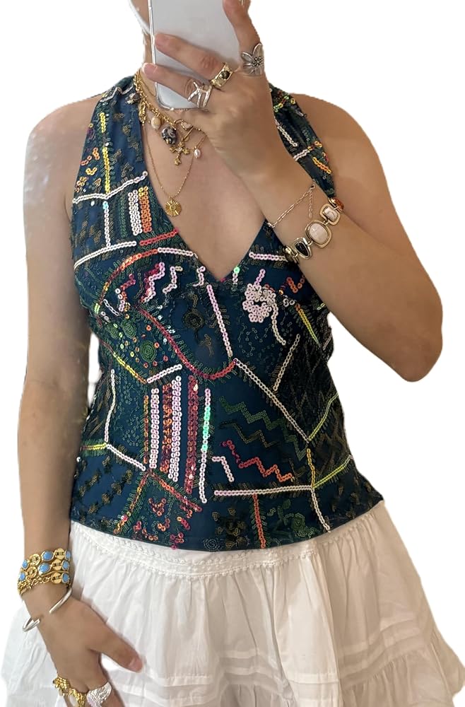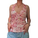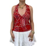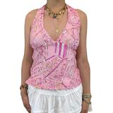 Features: Y2k floral halter tank top, tie backless floral crop tops, floral open back tied halter top feature halter neck, sleeveless, tie-up back, and open back design; Paired with floral pattern and beads details for a beautiful and chic look