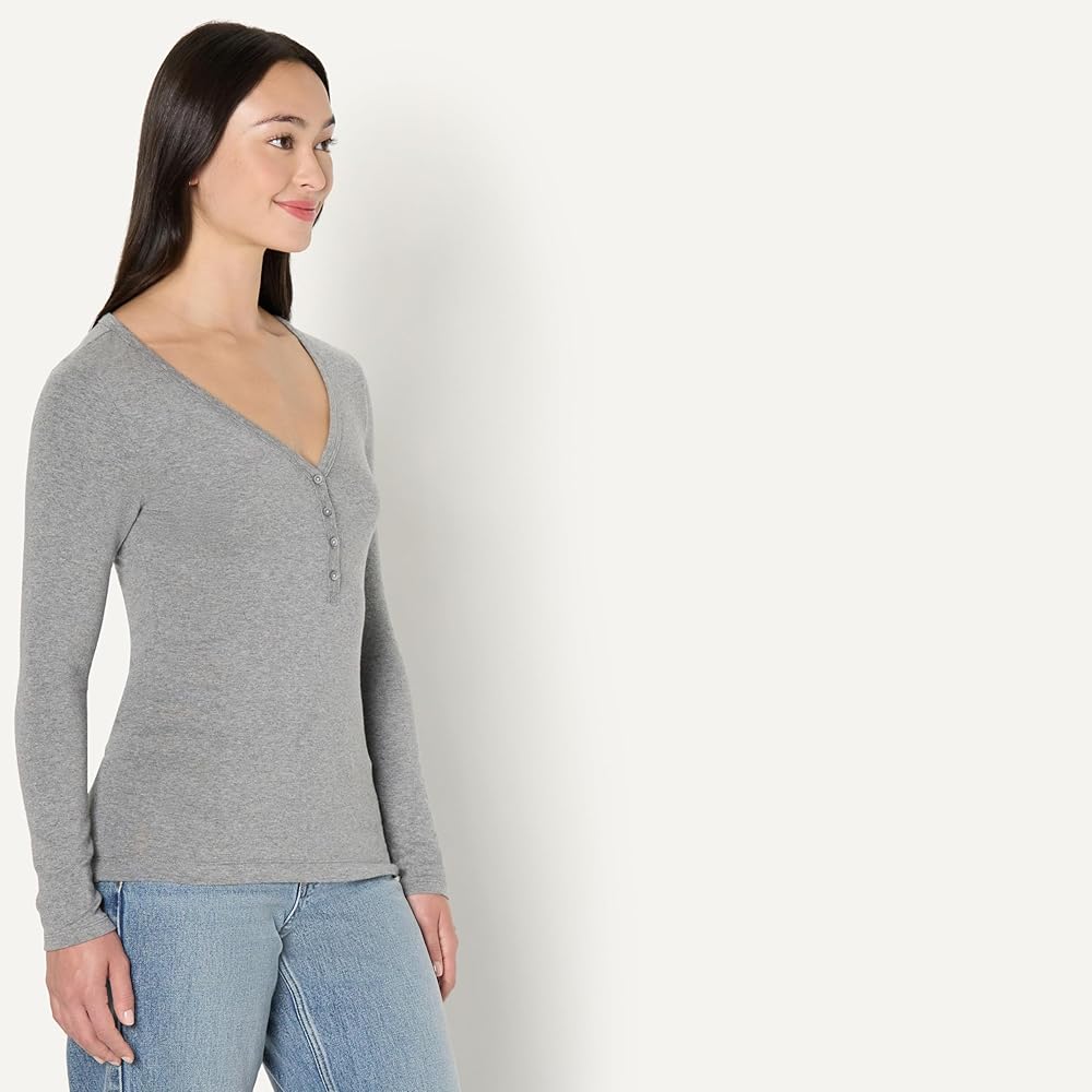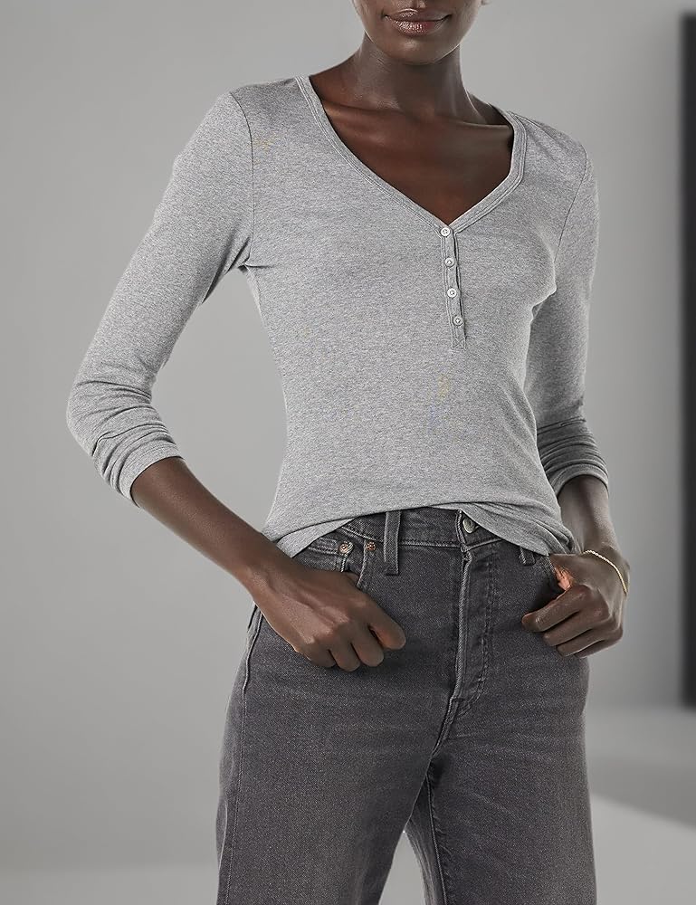 LAYERING HENLEY T-SHIRT: This versatile t-shirt is a classic wardrobe essential, perfect layered under your favorite jacket or cardigan, or wear on its own with a pair of jeans for easy, everyday style. The slim silhouette gives a flattering fitted look.