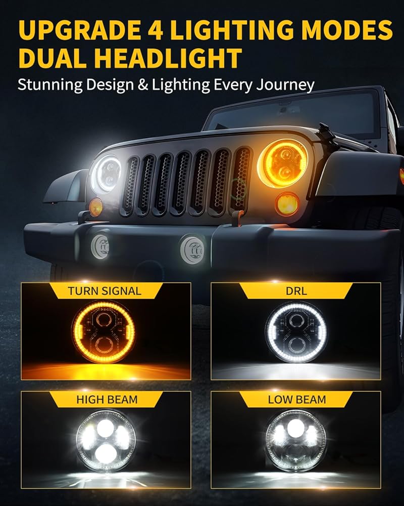 7 inch Round LED Headlights Upgrade 4 lighting Modes,DOT Approved Hi/Lo Beam DRL Amber Turn Signal Wrangler Headlight Fit for 1997-2018 Jeep Wrangler JK JKU LJ CJ TJ and Che-vy miata