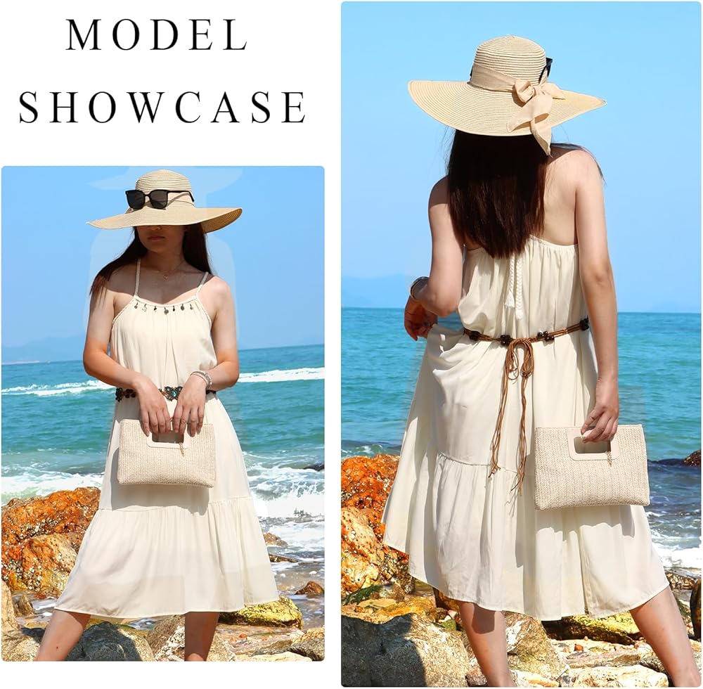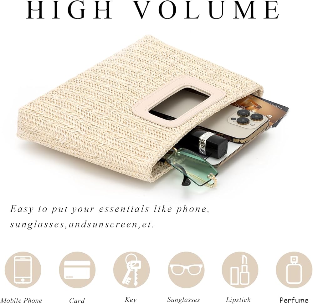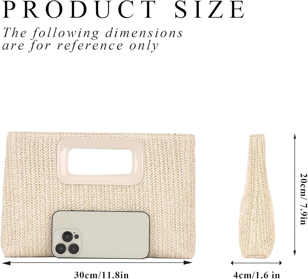 【Roomy Capacity】This straw tote bag size is about 11.8 x 1.57 x 7.87 inches,Interior 1 hidden small pocket, enough for you to put your Phone plus, toiletry, lipstick, wallet and other small daily essentials.