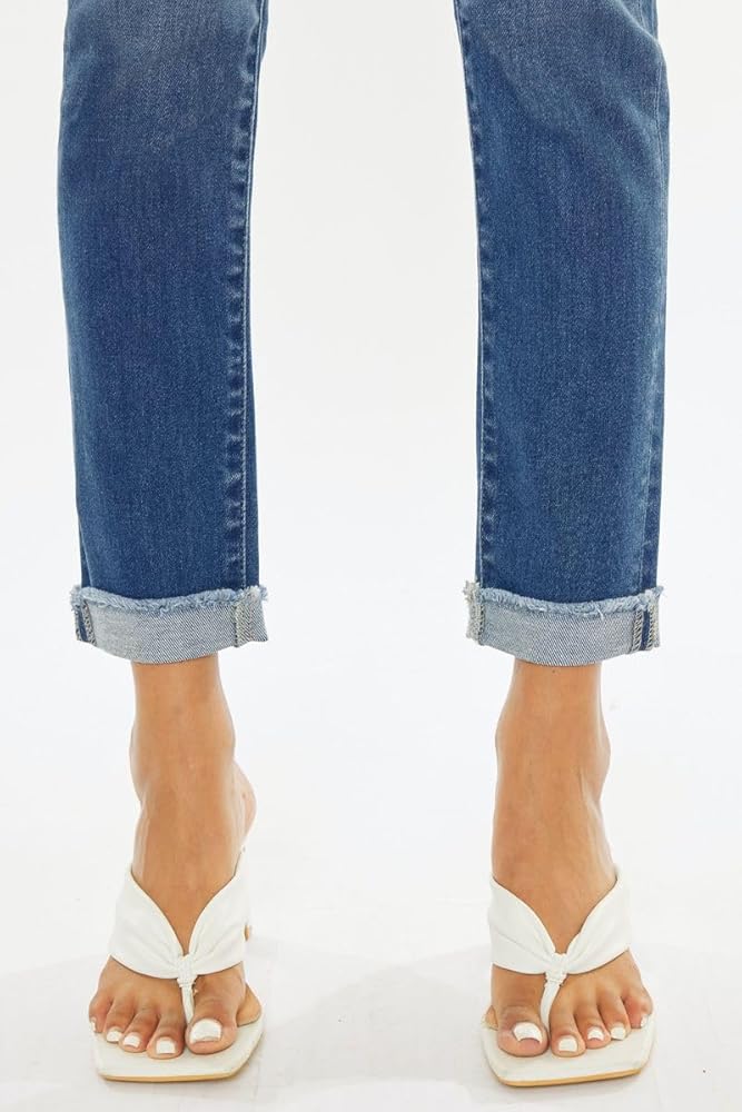 Show off your sleek yet trendy style with this pair of high-rise straight jeans featuring multiple washes and a classic cigarette leg look! These jeans sit above the waist and have a slim silhouette that cut straight from the knee to a cuffed hem ankle. Features a 5-button front closure and a classic 5-pocket design.