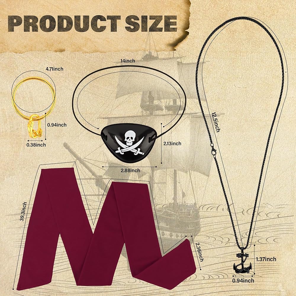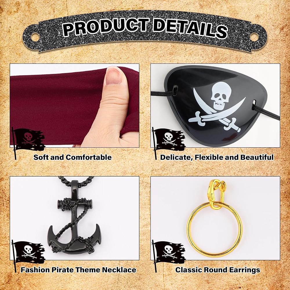 Perfect for Costume Events & Parties: The ultimate pirate accessories set for Halloween, pirate party themes (carnival, pirate birthday bashes), school plays, theater, cosplay, or as pirate party favors. Essential pirate decorations for any event! Guaranteed to turn heads whether completing a pirate dress, pirates costume women, or pirate costume adult.