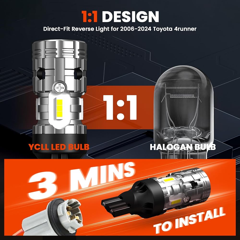 50000+H Long Lifespan: Built with an all-aluminum body and an intelligent IC driver for superior heat dissipation, this 921 LED reverse light is resistant to high temperatures and aging.