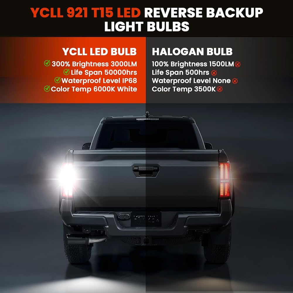 300% Brightness: YCLL 921 912 LED reverse backup lights equipped with high performance 1860 CSP, providing a clearer view when reversing.6000K Cool White.