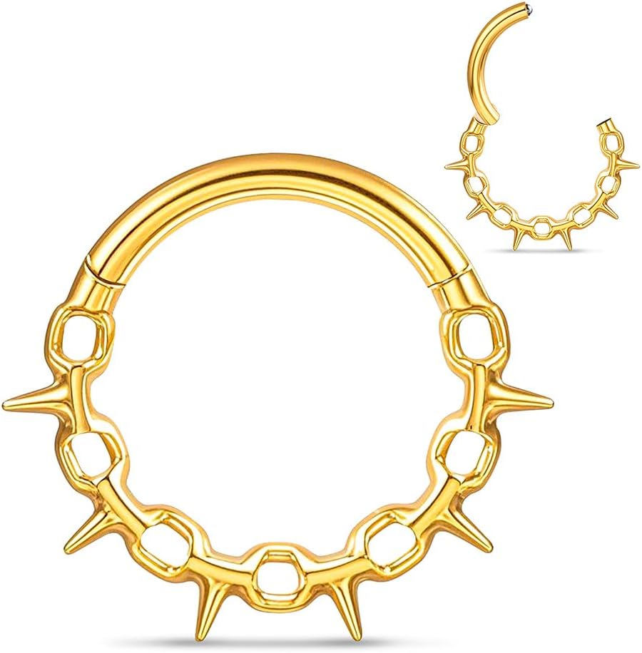 [Specifications ]: Black plated clicker nose rings/septum rings: 16 gauge(thickness:1.2mm), inner diameter 10mm(00g). Good as cartilage earrings hoops, tragus piercings hoops, daith piercing, conch piercing, helix earring, septum piercing, ear lobe piercings, nose piercing ring hoops, nostril hoop ring, lip rings