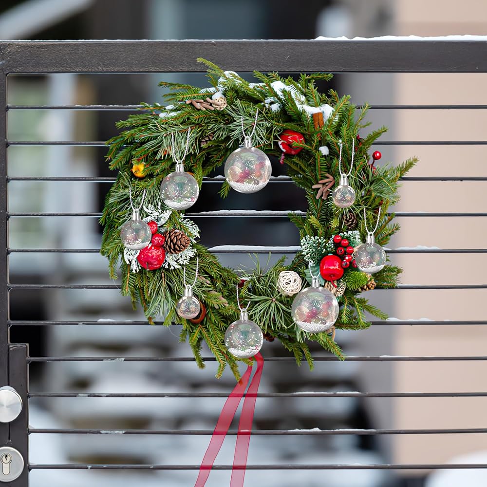 These Christmas ornament balls can be filled with many things, candy, photos, miniatures, natural objects, etc And you can do graffiti on the surface of the ball.Which is Christmas tree, Birthday, Celebrations, Parties, decortion