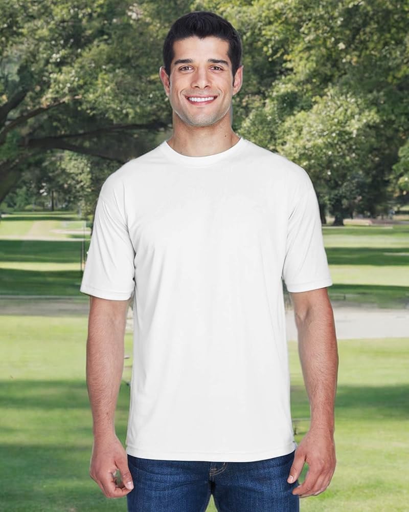 100% micro-polyester. -. Pill-resistant. Snag-resistant. UPF 30+ protection. Athletic fit. Neck tape. 1/4" topstitching