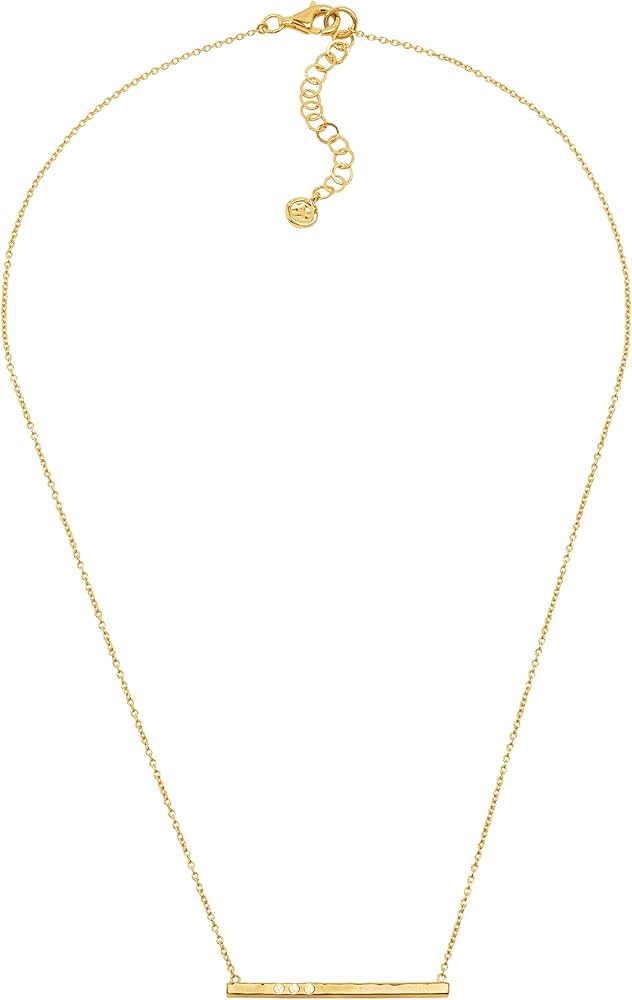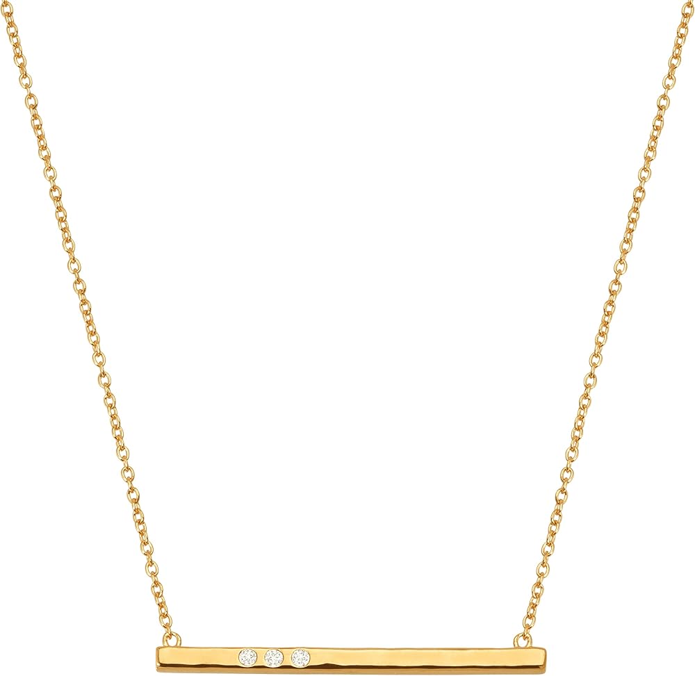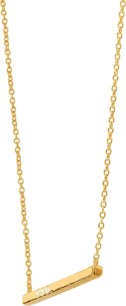 It's a straight line to fabulous with this studded sterling silver necklace. Featuring a sleek, horizontal block of 14K gold-plated sterling silver and three Swarovski crystal accents, this necklace is perfect for layering with lengthy strands and adds a little subtle sparkle to your wardrobe staples like plaid shirts or sheer scoop-neck tanks. Feature piece measures 1 5/8 inches in length. Necklace measures 18 inches long, plus a 2-inch extender for adjustable length & features a lobster clasp.