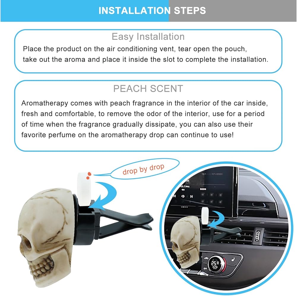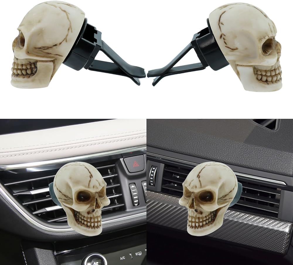 The Car Vent Air Freshener Skull Decorative Accessory is a great way to make your car's interior air vents more aesthetically pleasing, adding a personalized touch of fun and cheerfulness to your car,Universal fit car and truck air vents.