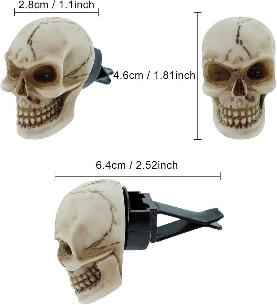 Car Vent Air Freshener Skull Decorative Accessory is a great way to make your car's interior air vents more aesthetically pleasing, adding a personalized touch of fun and cheerfulness to your car,skull size : 1.1 x 1.81 inch / 2.8 x 4.6 cm.